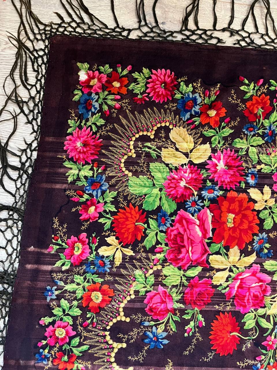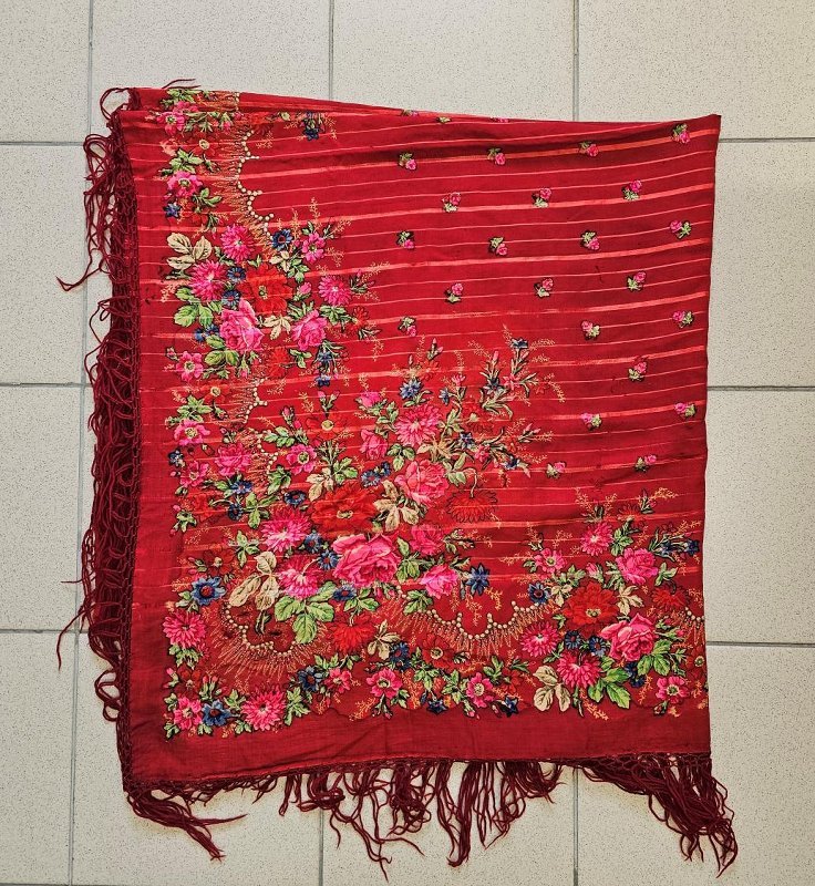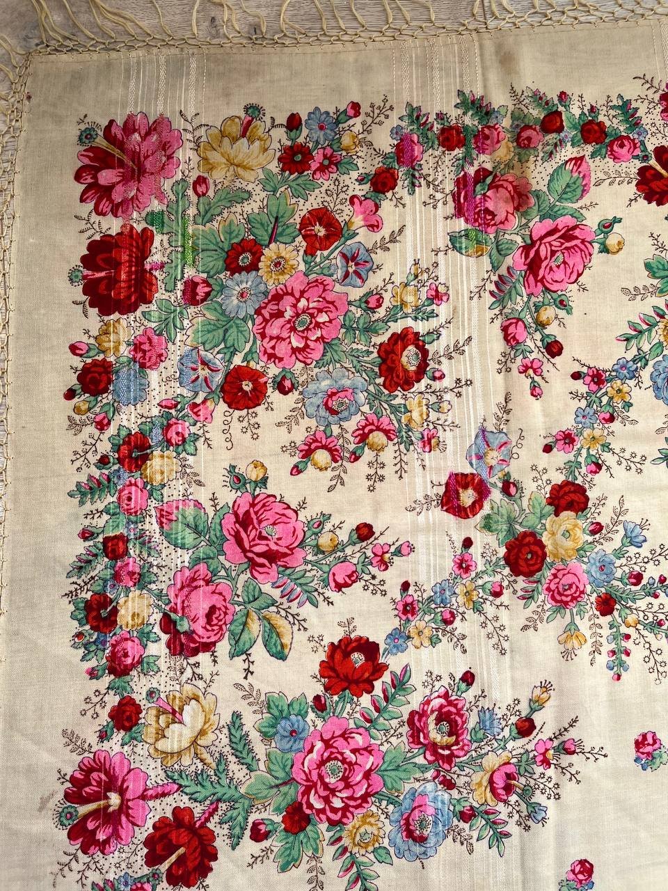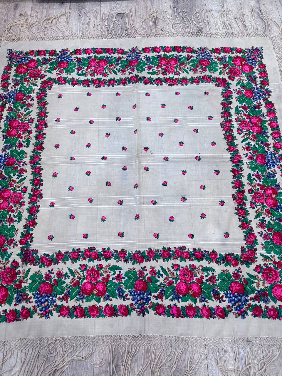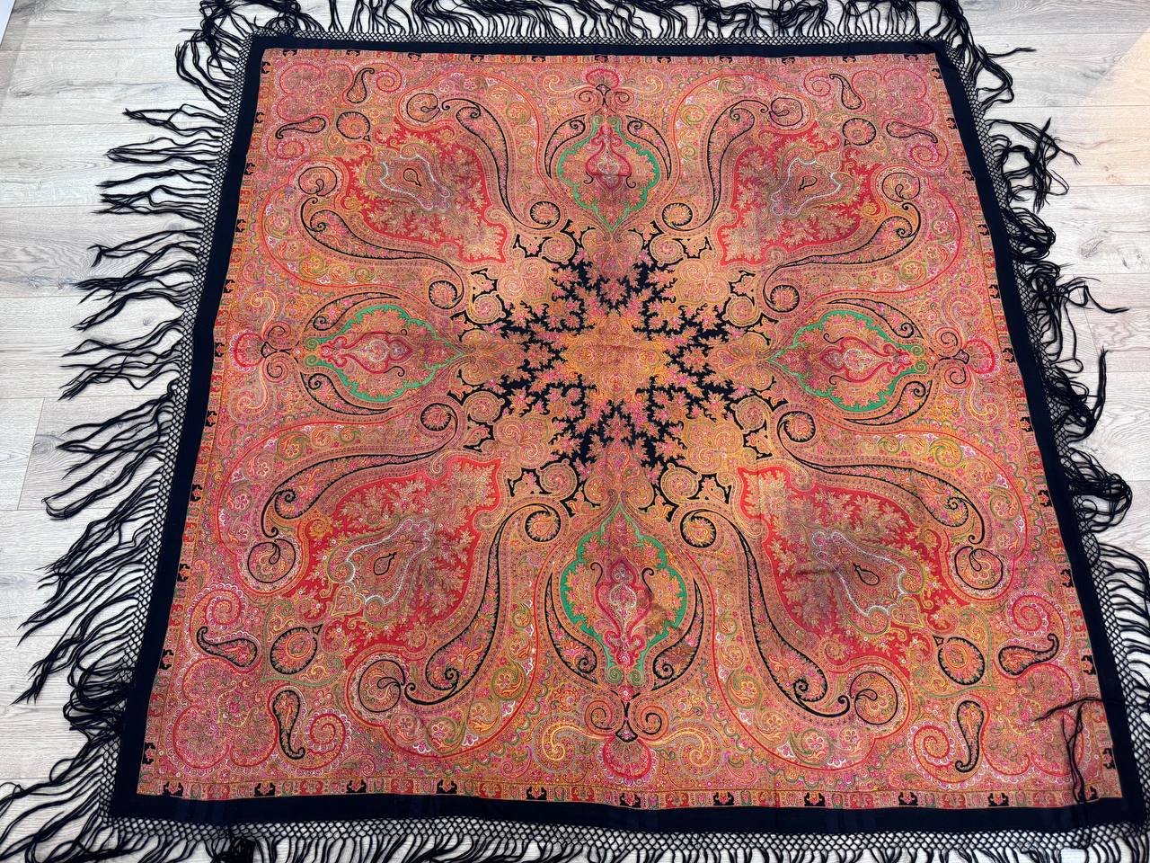 Описание продавца: Дореволюционная шаль с номерным штампом № 92 (конец XIX – начало XX вв.) Такие номера ставились на мануфактурах для учета партий или рисунков в каталогах, что является прямым подтверждением солидного возраста и фабричного происхождения изделия.