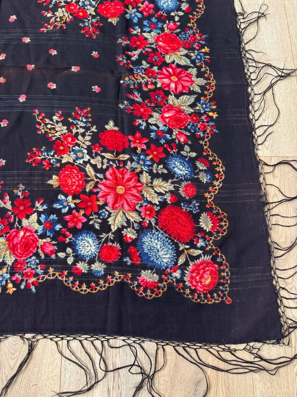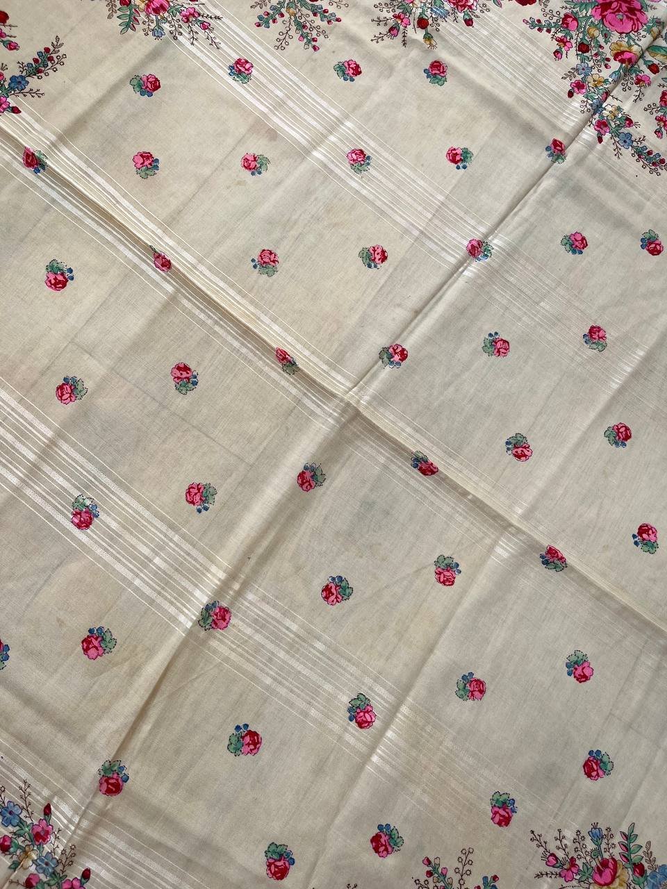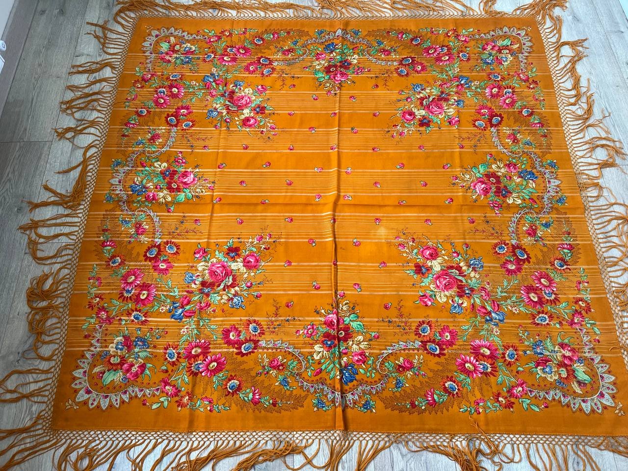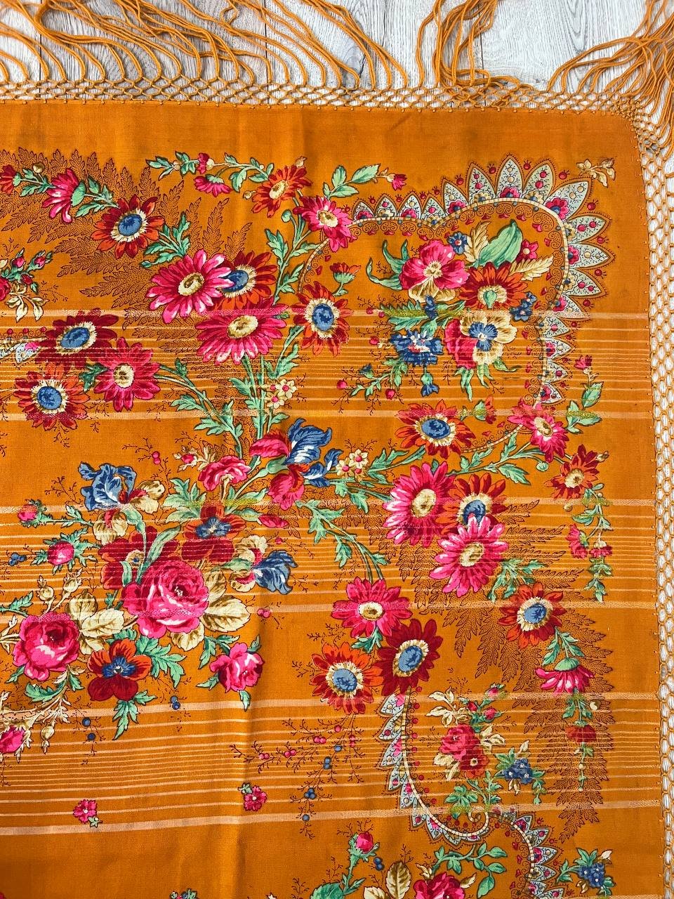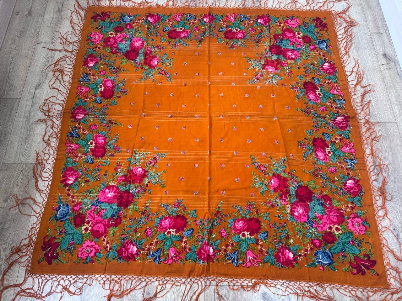Описание продавца: Дореволюционная шаль с номерным штампом № 92 (конец XIX – начало XX вв.) Такие номера ставились на мануфактурах для учета партий или рисунков в каталогах, что является прямым подтверждением солидного возраста и фабричного происхождения изделия.
