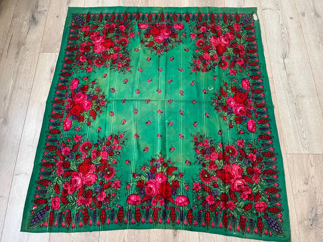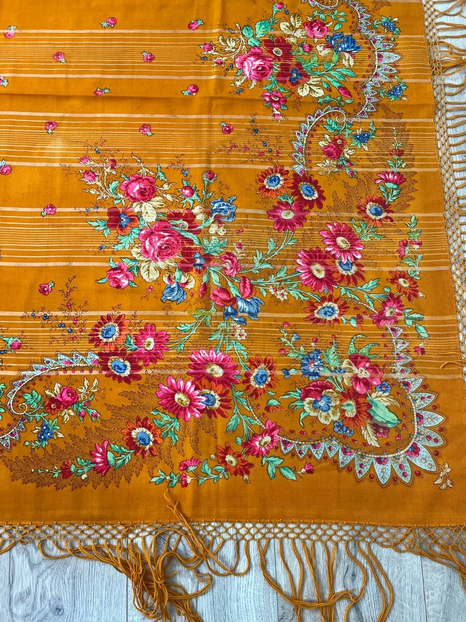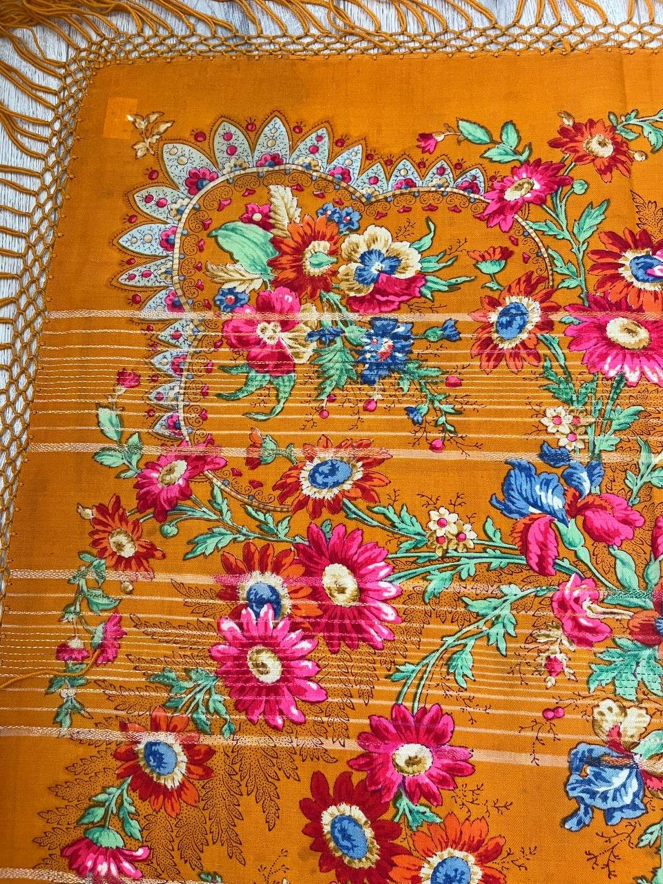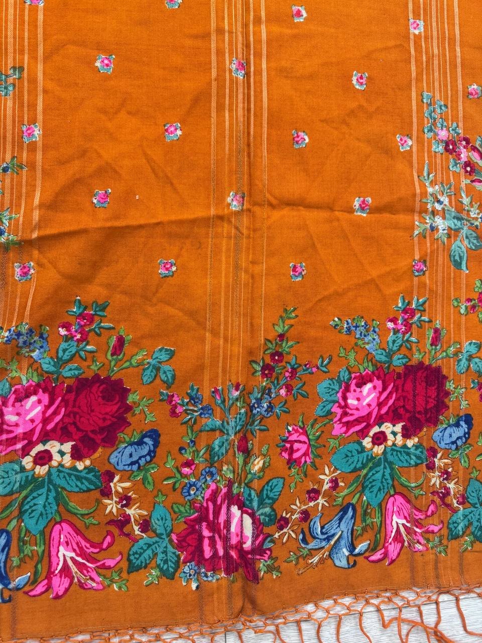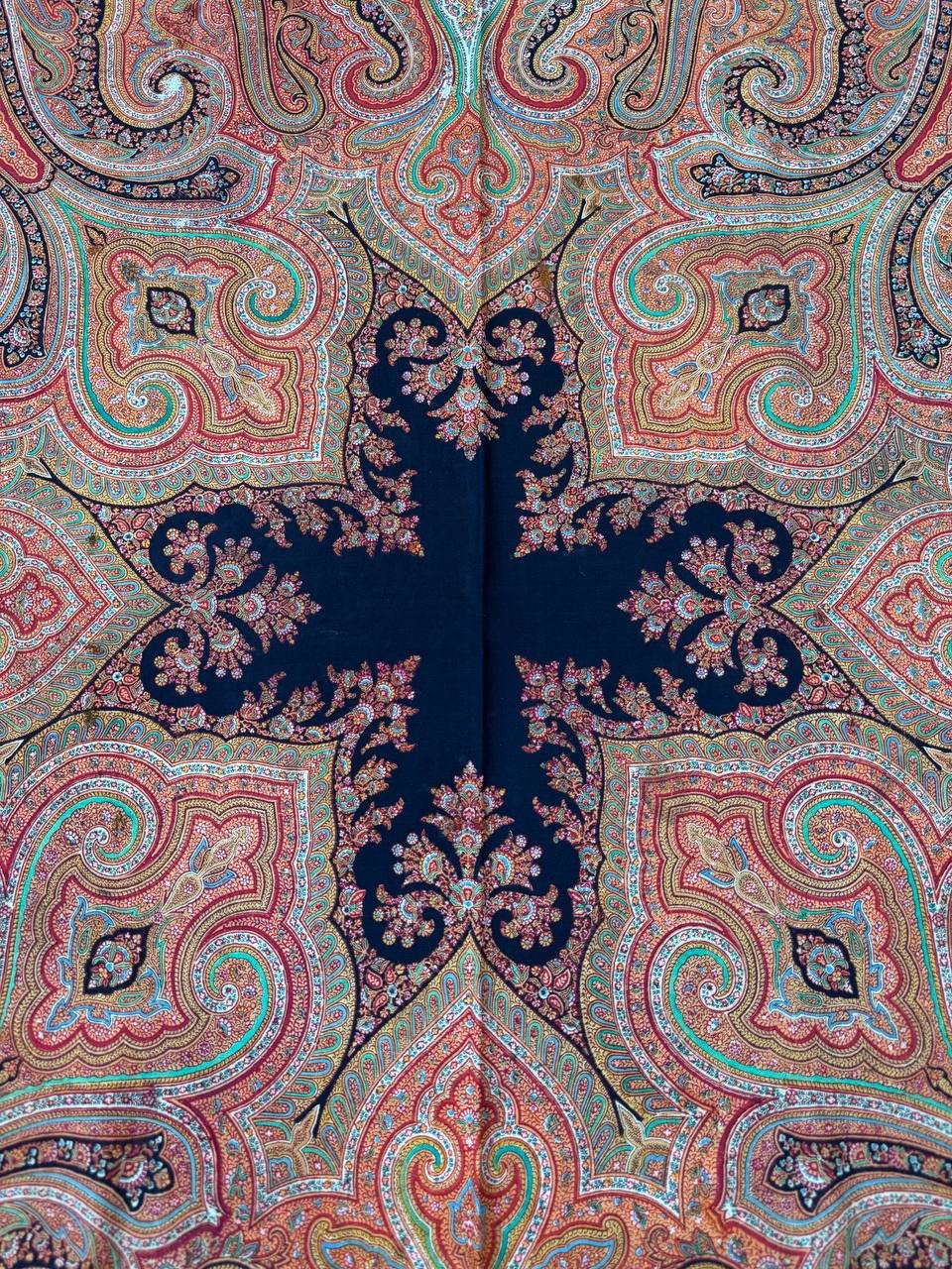 Описание продавца: Дореволюционная шаль с номерным штампом № 92 (конец XIX – начало XX вв.) Такие номера ставились на мануфактурах для учета партий или рисунков в каталогах, что является прямым подтверждением солидного возраста и фабричного происхождения изделия.