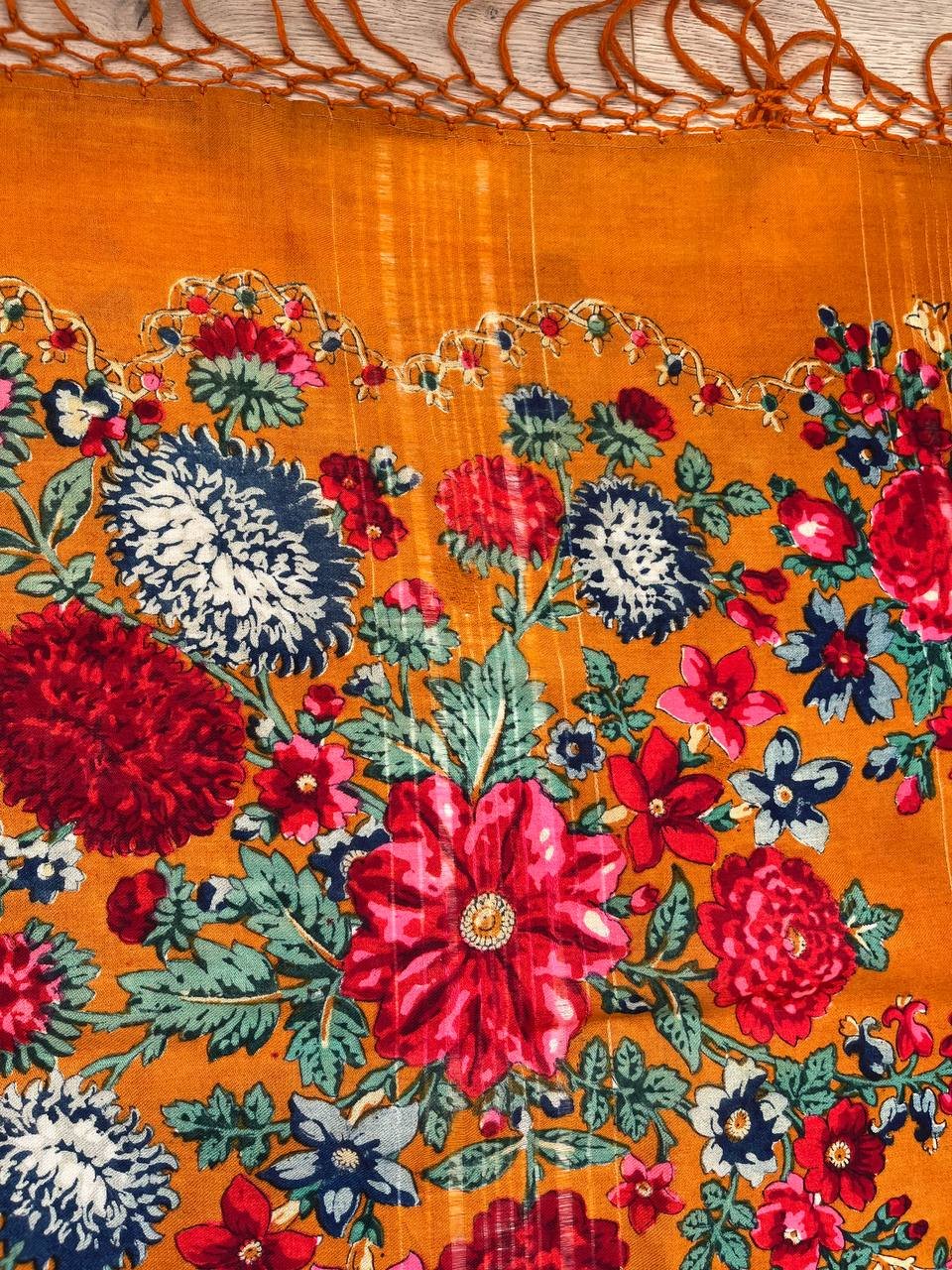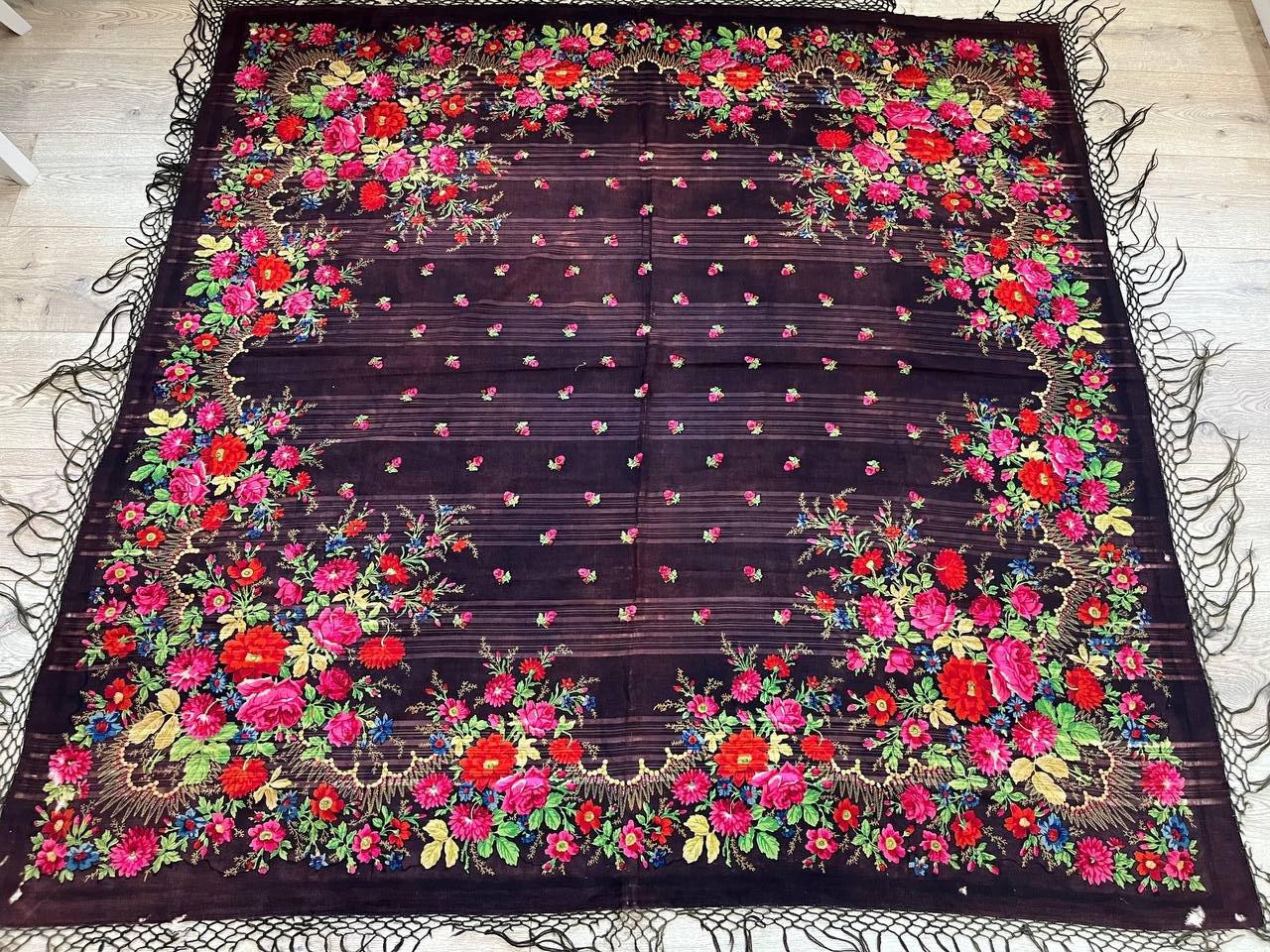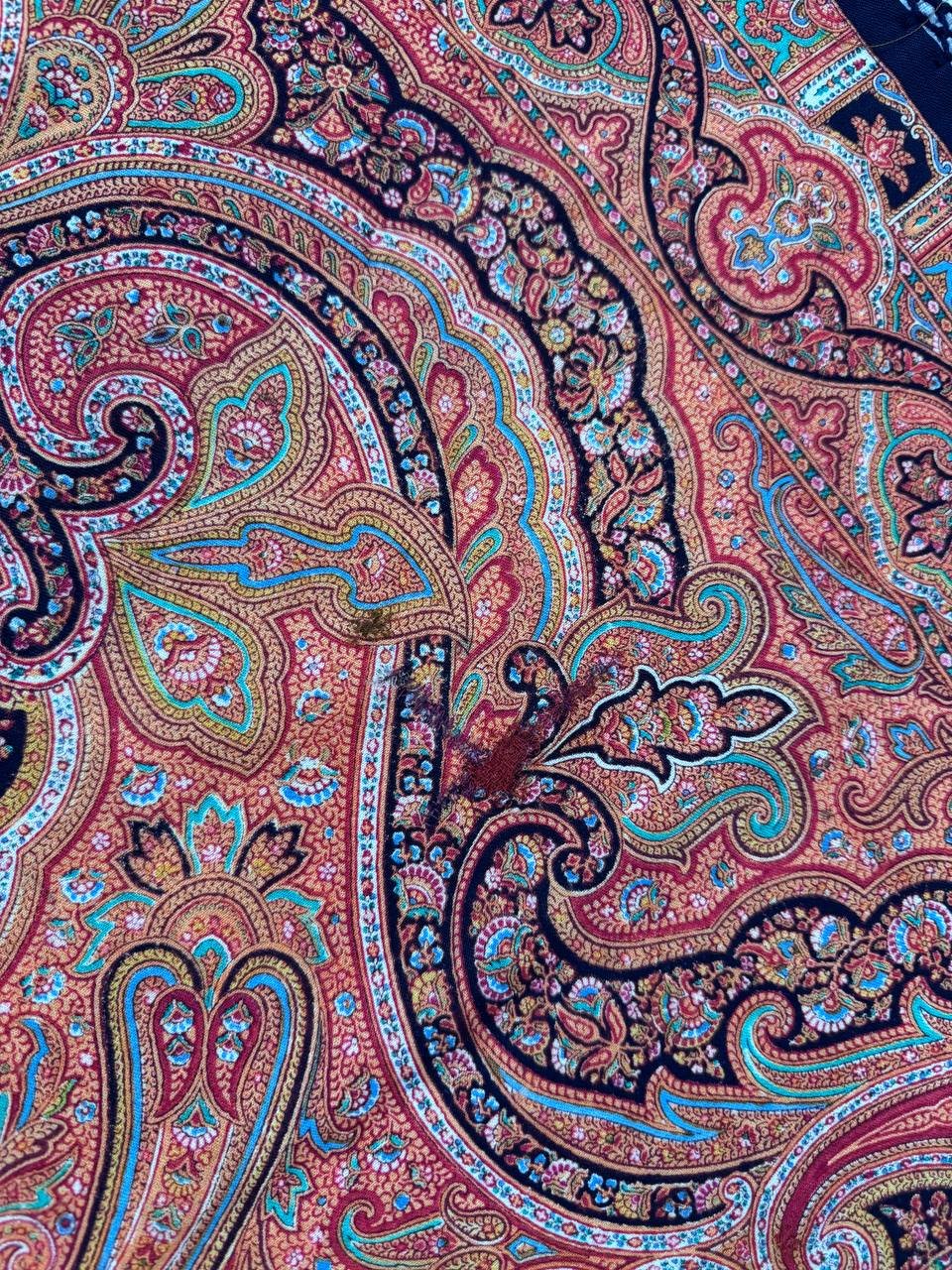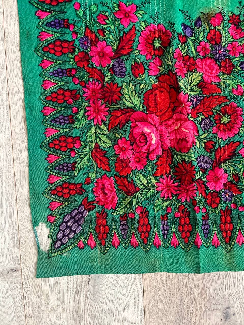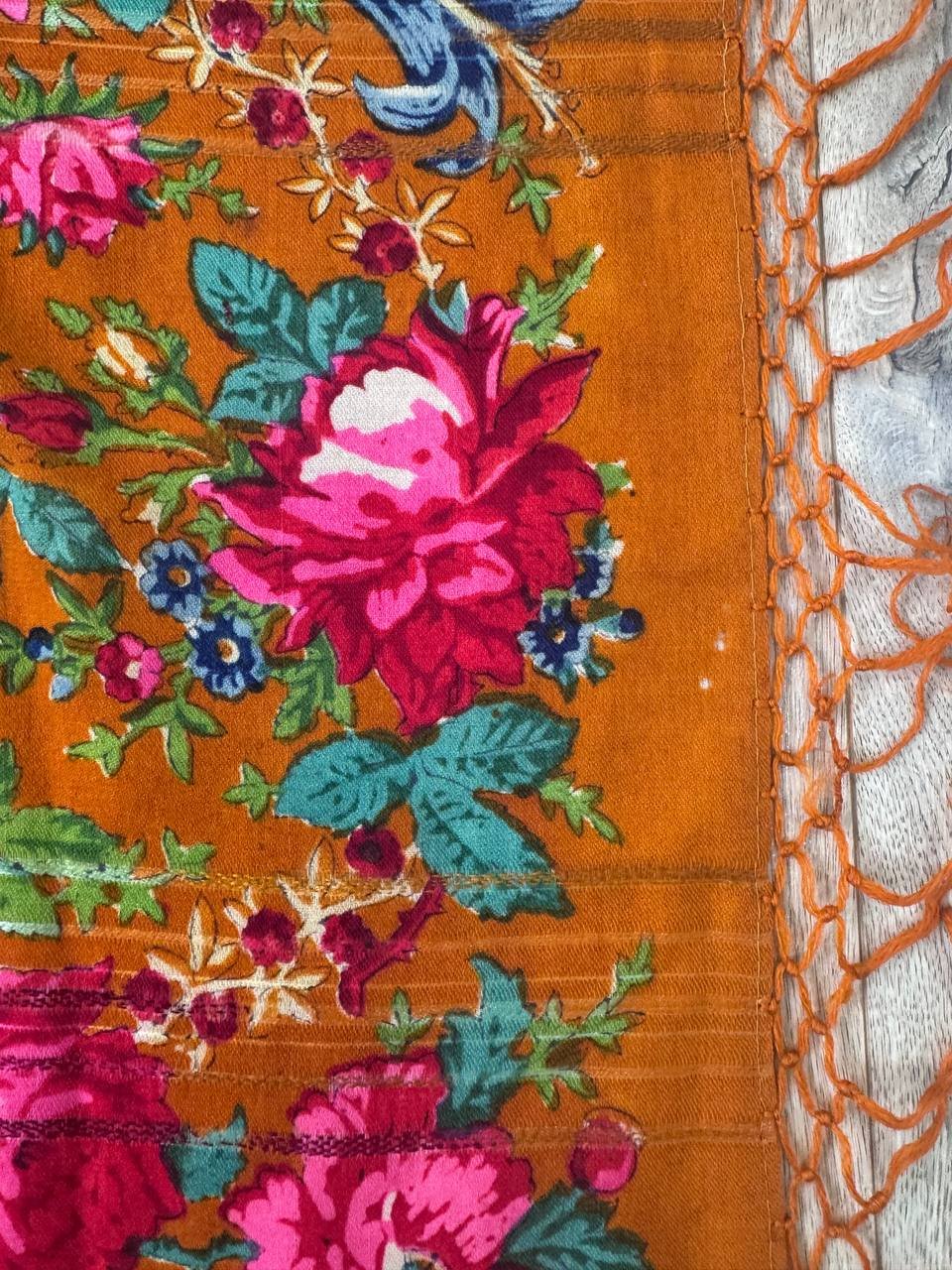 Описание продавца: Дореволюционная шаль с номерным штампом № 92 (конец XIX – начало XX вв.) Такие номера ставились на мануфактурах для учета партий или рисунков в каталогах, что является прямым подтверждением солидного возраста и фабричного происхождения изделия.