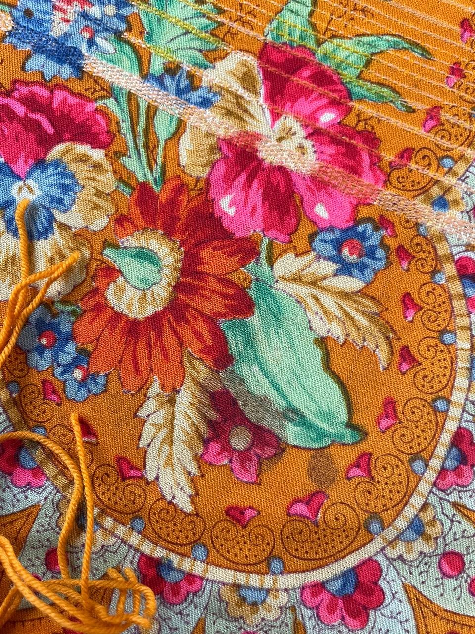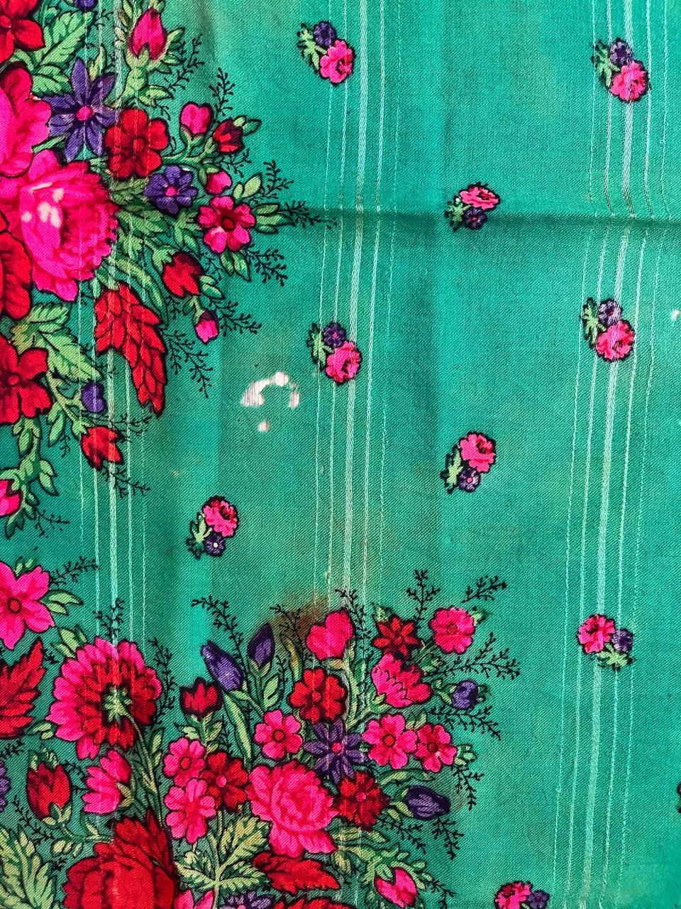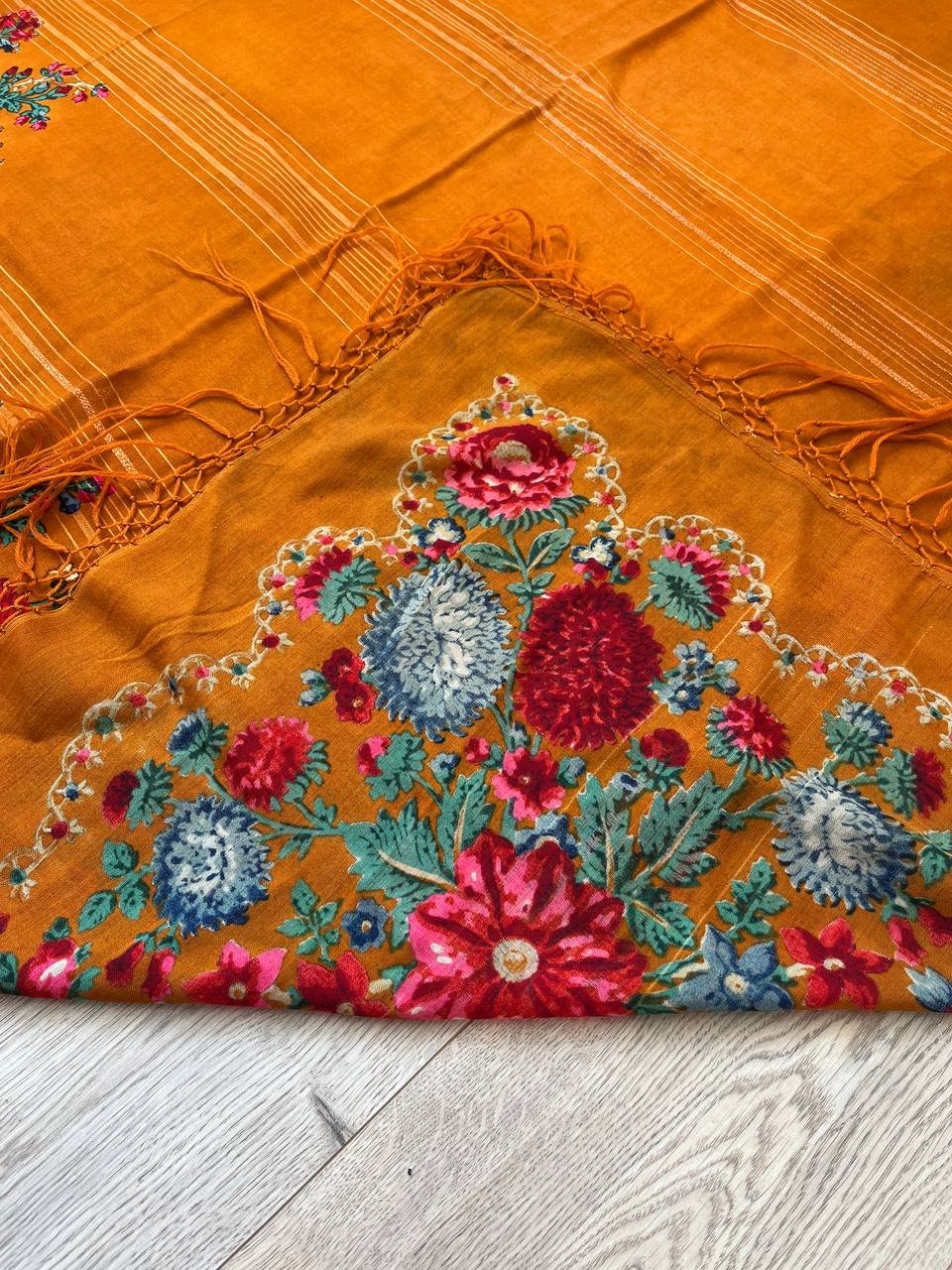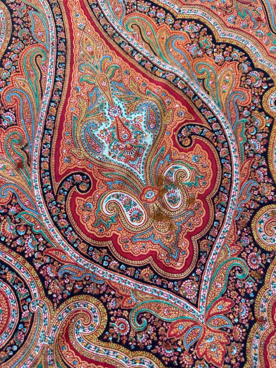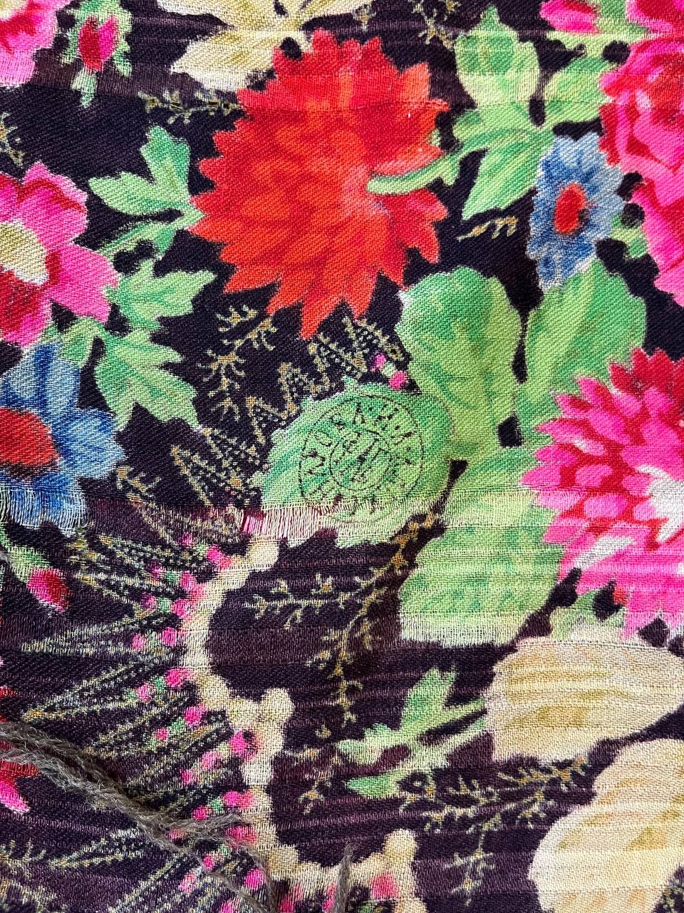 Описание продавца: Дореволюционная шаль с номерным штампом № 92 (конец XIX – начало XX вв.) Такие номера ставились на мануфактурах для учета партий или рисунков в каталогах, что является прямым подтверждением солидного возраста и фабричного происхождения изделия.