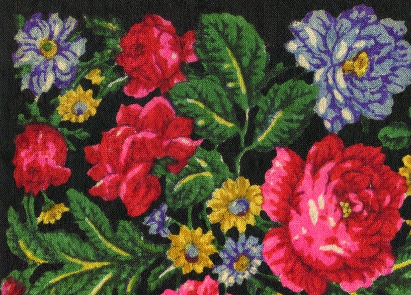 Для чёрной шали сканов изнанки не делали, так как отличается лицо от изнанки более ярким цветом. Сравнивали только лицевую сторону ручной набойки.