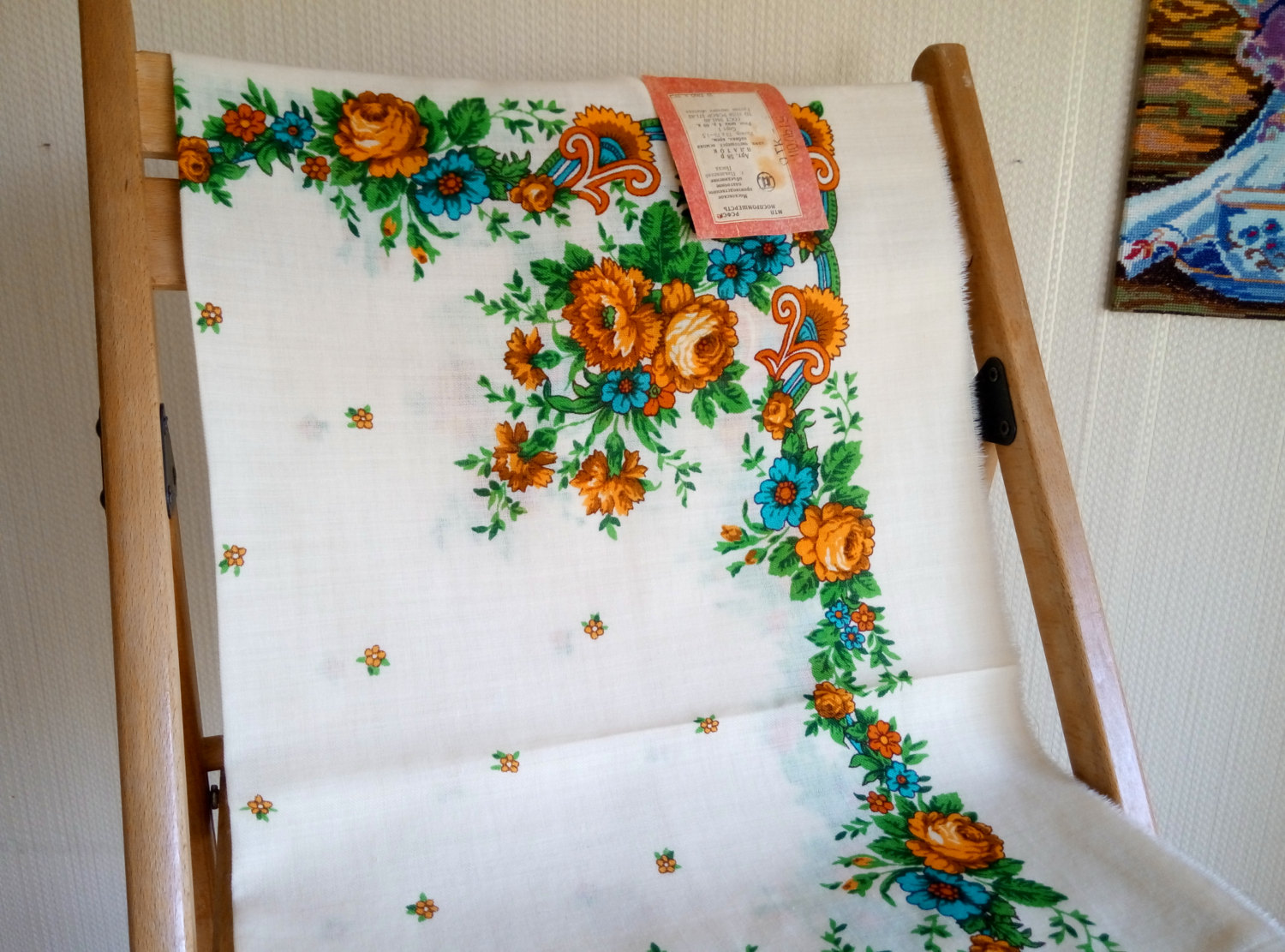 Другой платочек с таким-же рисунком и колоритом Читала комментарии продавцов, что платок украинского производства. Рисунок 80-х годов