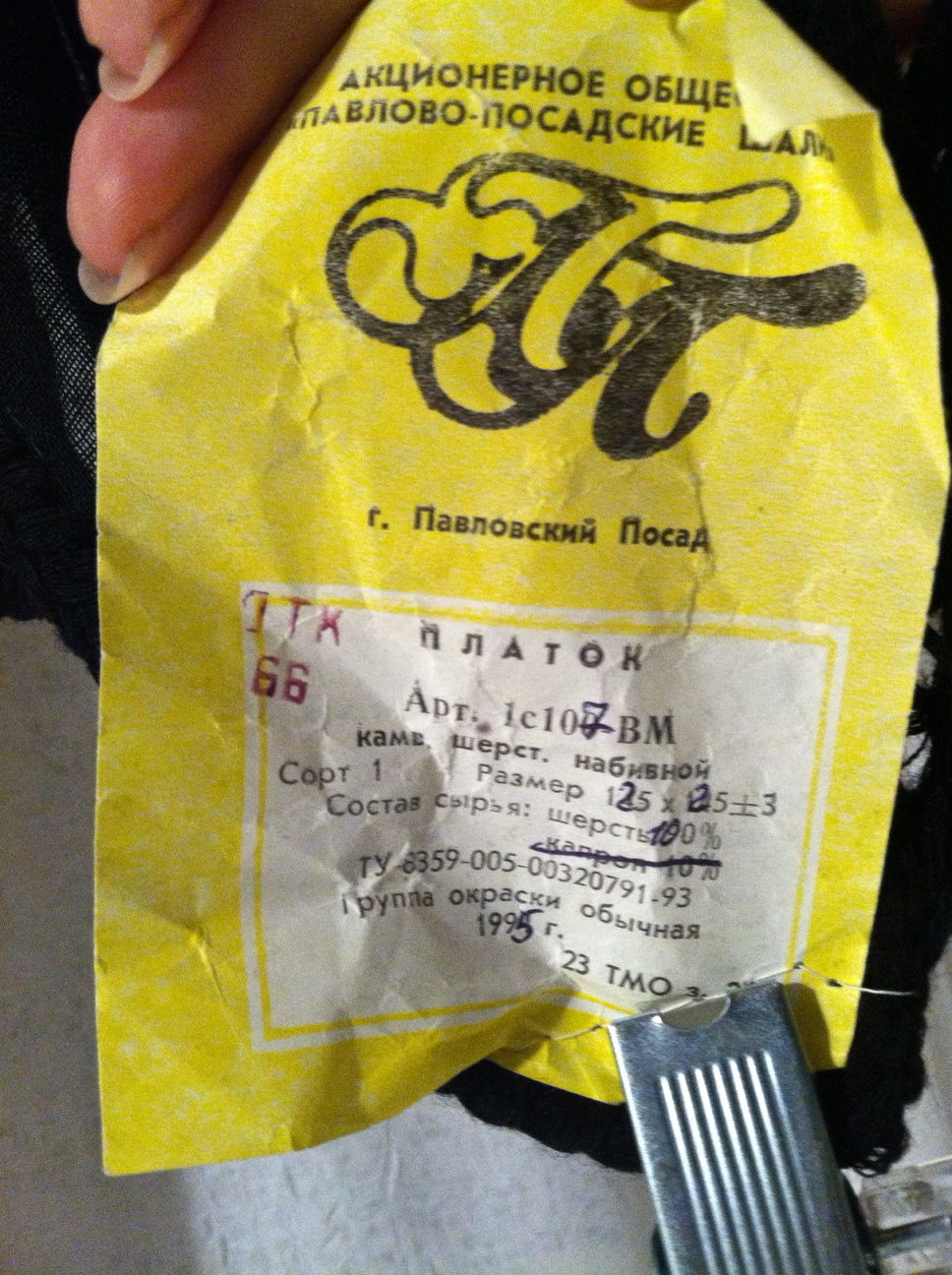 С 1992 года фабрика стала АОЗТ "Павлово-Посадские шали". Вот этикетка.