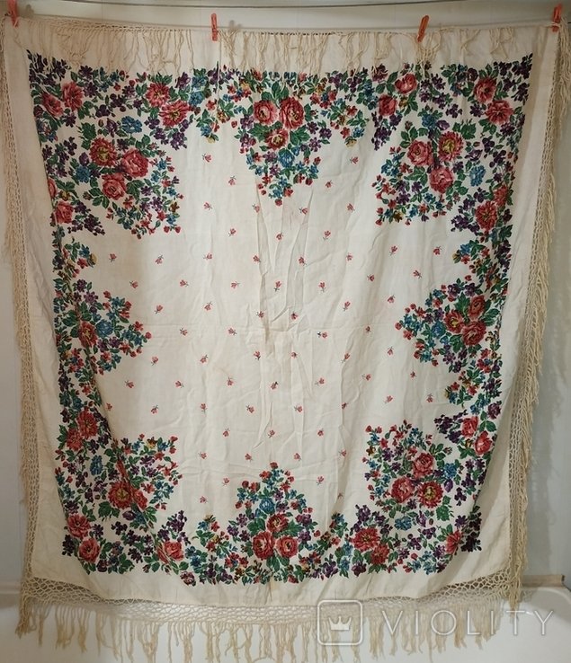Бывшая владелица этого платка поделилась его историей: "Платок был превезен прадедом из австрийского плена в Киев на сватание в 1867 году. Потом платок переходил по женской линии в семье и надевался на на самые торжественные случаи. Платок не продали в войну. хранили В семье рождались одни девочки. На мне традиция рождения девочек закончилась но и платок я не разу не надевала. Вот его секрет."