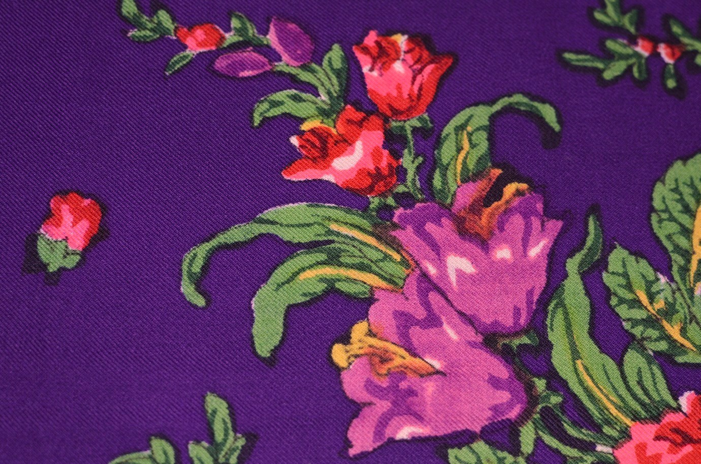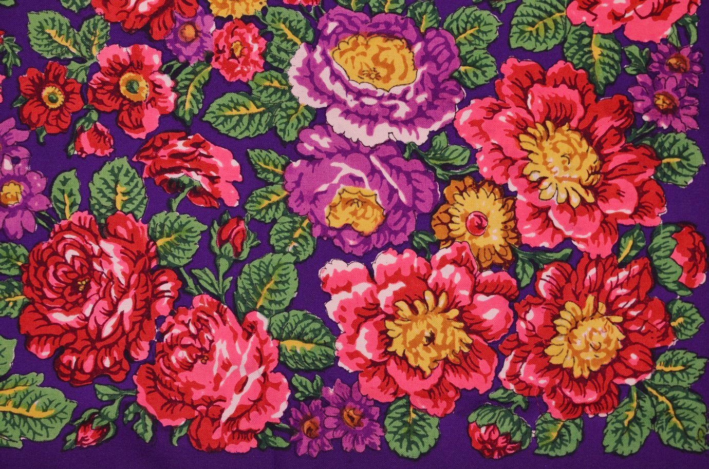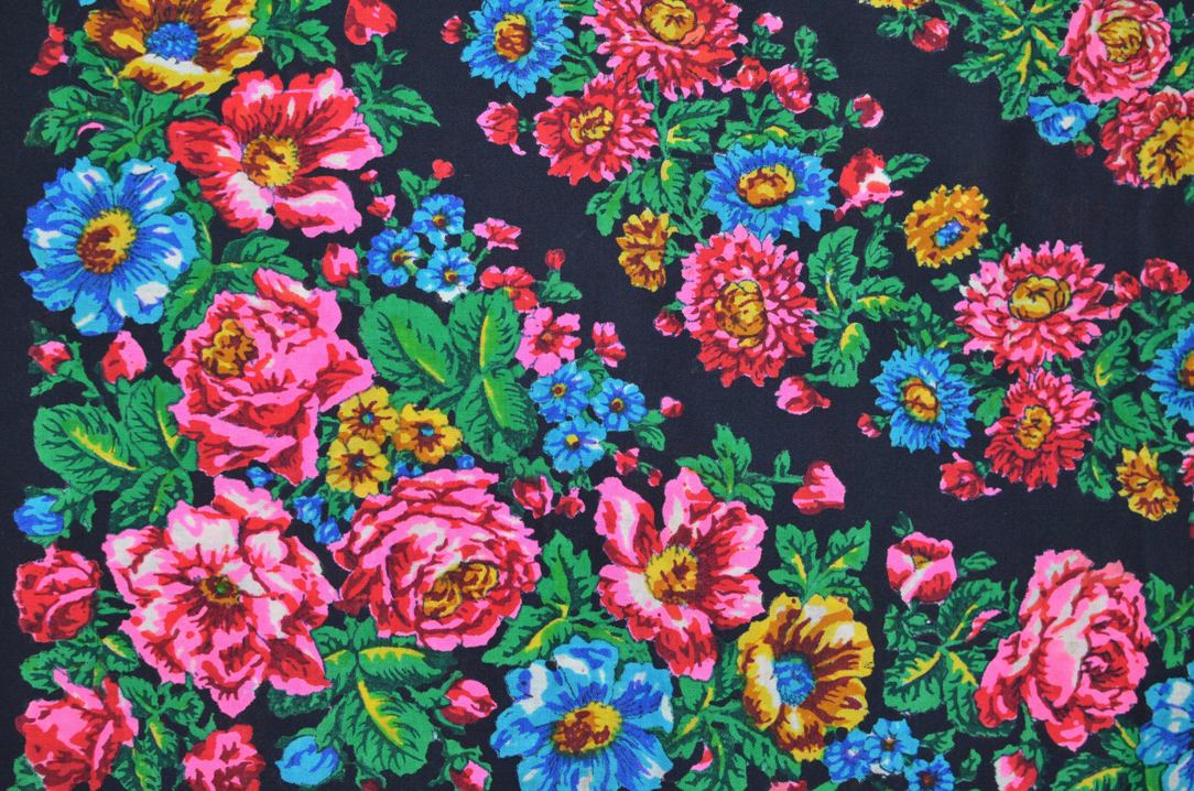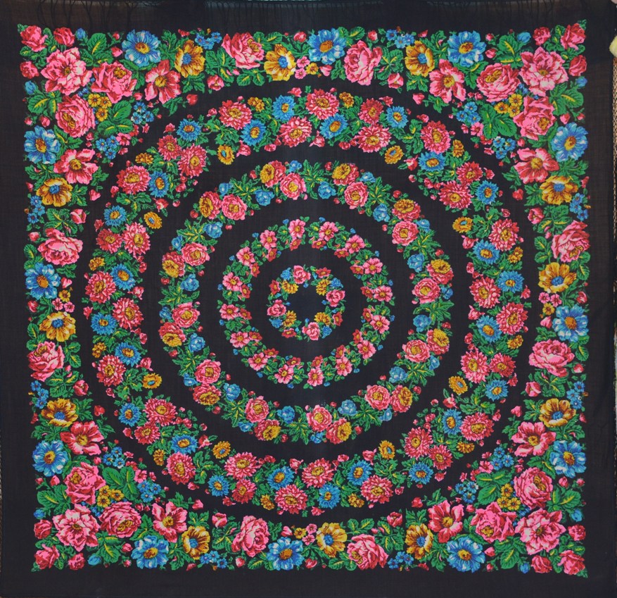 Еще одна шаль, на мой взгляд, ручная набойка. Константин Аболихин? Точек нет на черно поле, но есть характерные набрызги краски и тонкая черная обводка. Как вы думаете я права?