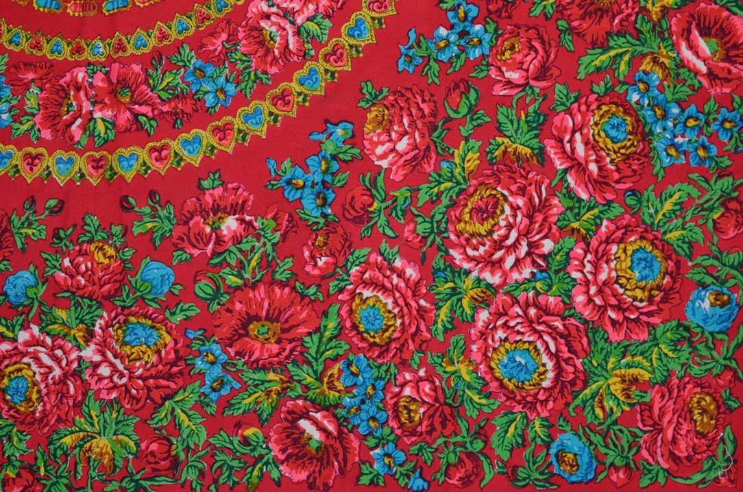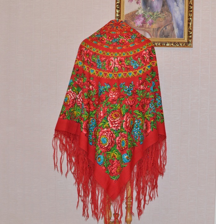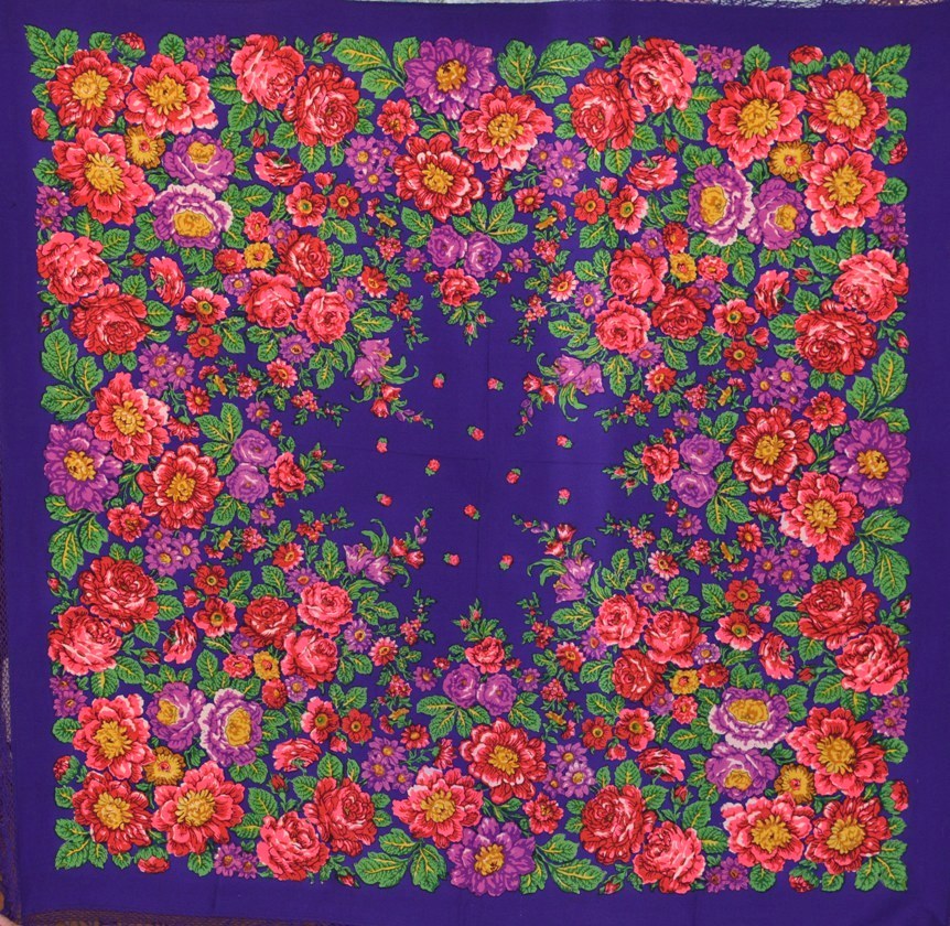 Нил Постигов, похоже, что оригинальная ручная набойка. Шаль уплотненная, 150 см на 150 см.