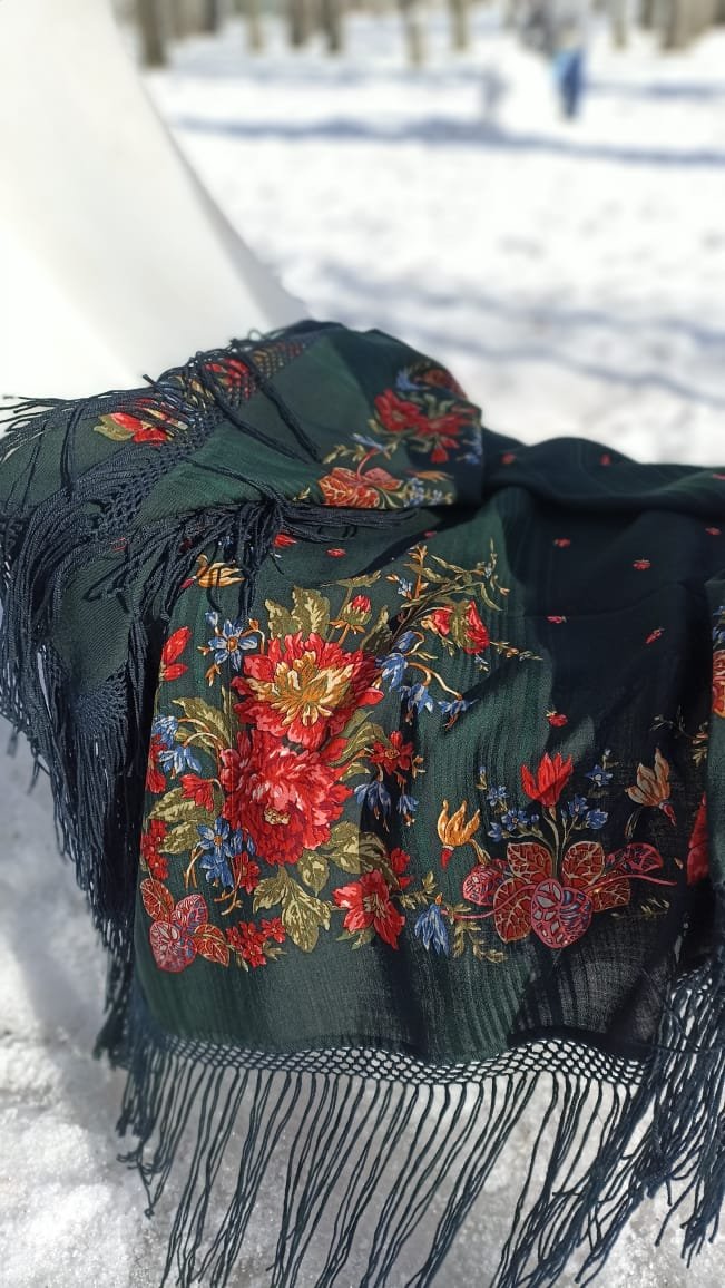 А ещё у меня появился платок Поле цветов, в синем и черном колорите.