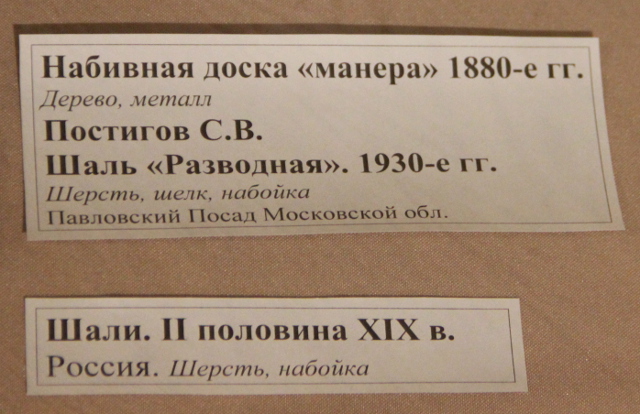 Фотографировать можно (100 рублей). Выставлено в витрине шалей 10. Через стекло неудобно фотографировать.