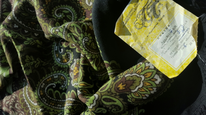 Я тут купила вполне современный платок большого размера, так у него вшитая в подгибку тканевая бирка отсутствует совсем. А бумажные этикетки прикреплены пластиковой штучкой просто за край. Забыли, наверное, вшить. Чему я очень рада, ибо если не выпарывать их, то часто заворачиваются наружу, да и пришиты бывают абы как, криво-косо, со складками.
