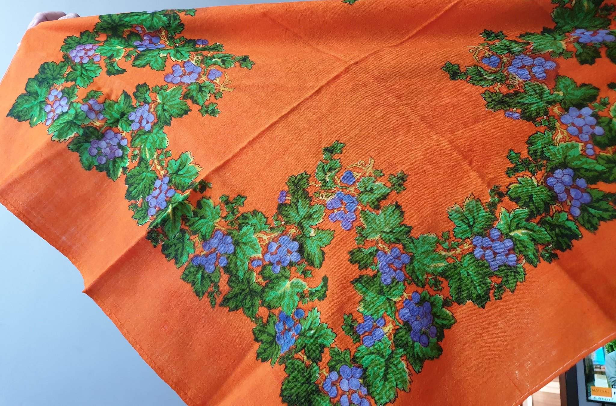 Очень понравился этот малыш, изысканное цветовое сочетание - голубые грозди и зеленые резные листья винограда на оранжевом.