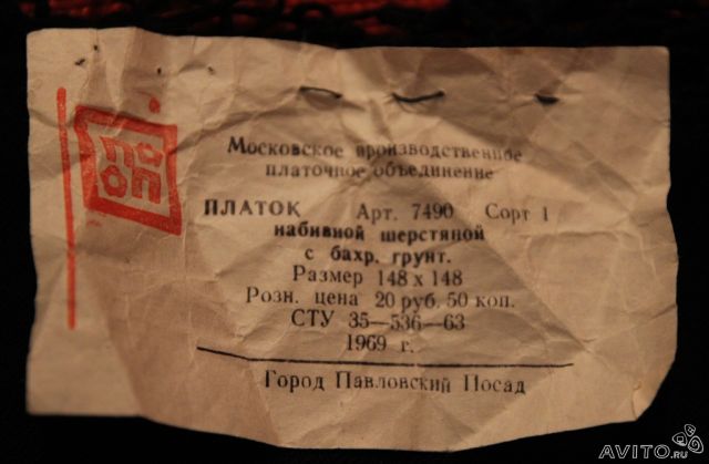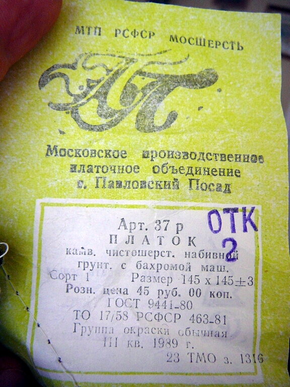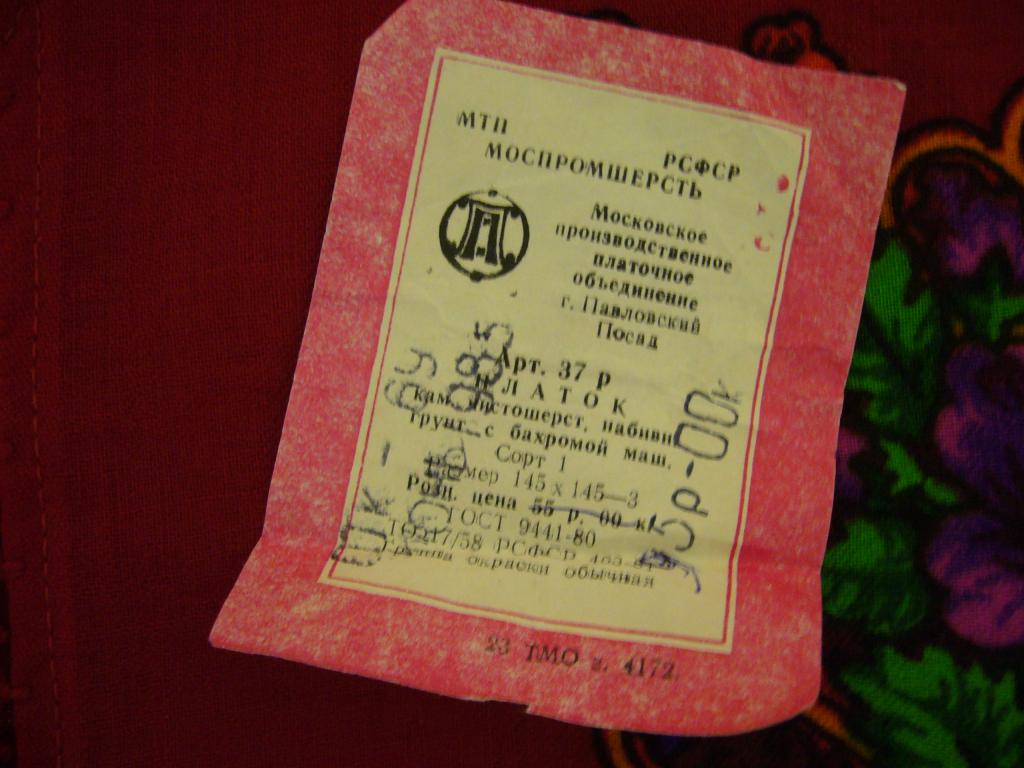 По хронологии у нас идет Московское производственное платочное объединение. Несколько этикеток.