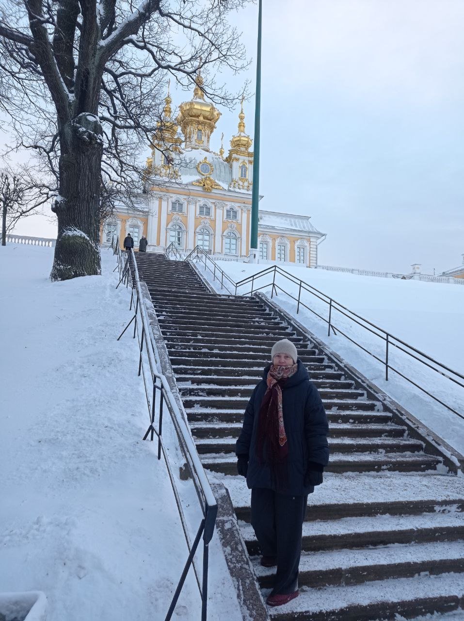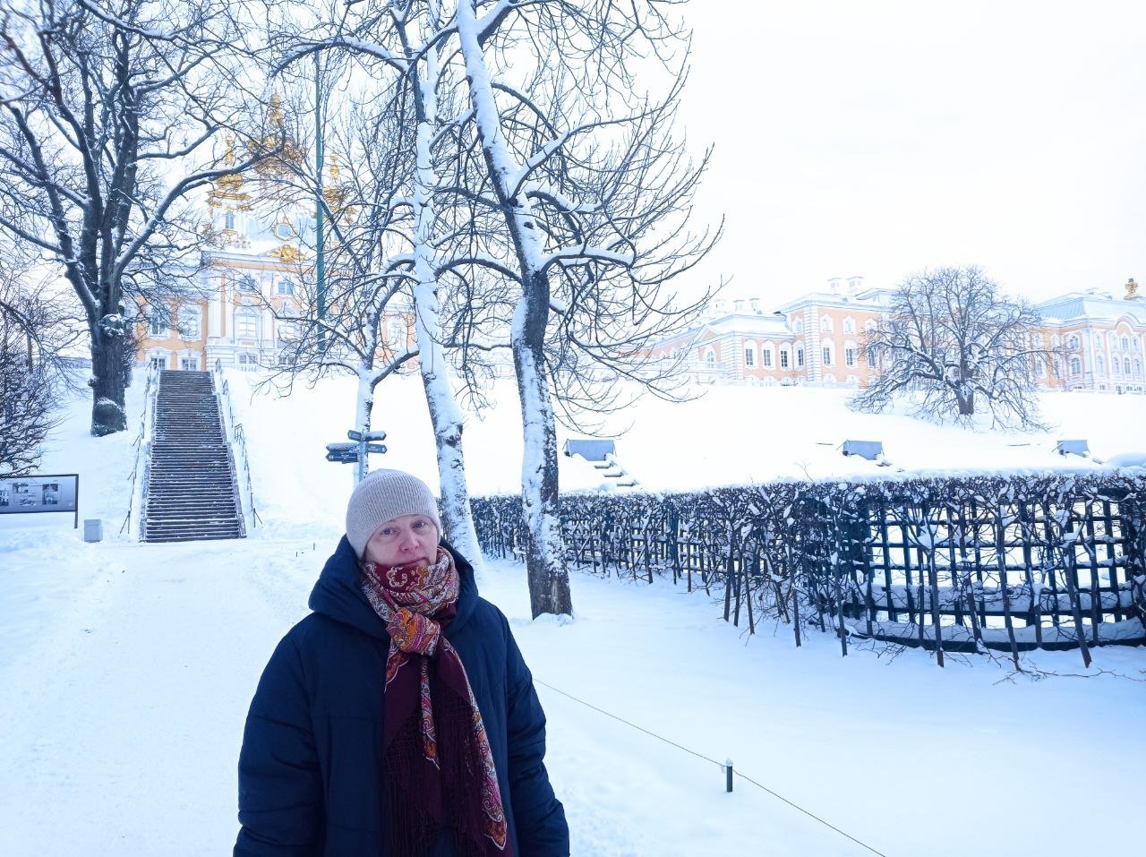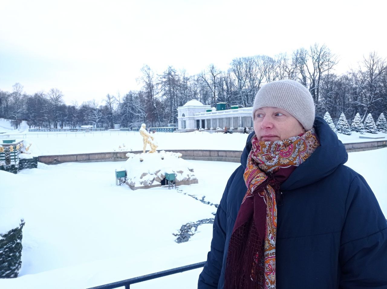 Вчера хотели поехать в Петергоф, но поняли, что можем застрять в сугробах. Погуляли в нашем парке 60-летия Победы.