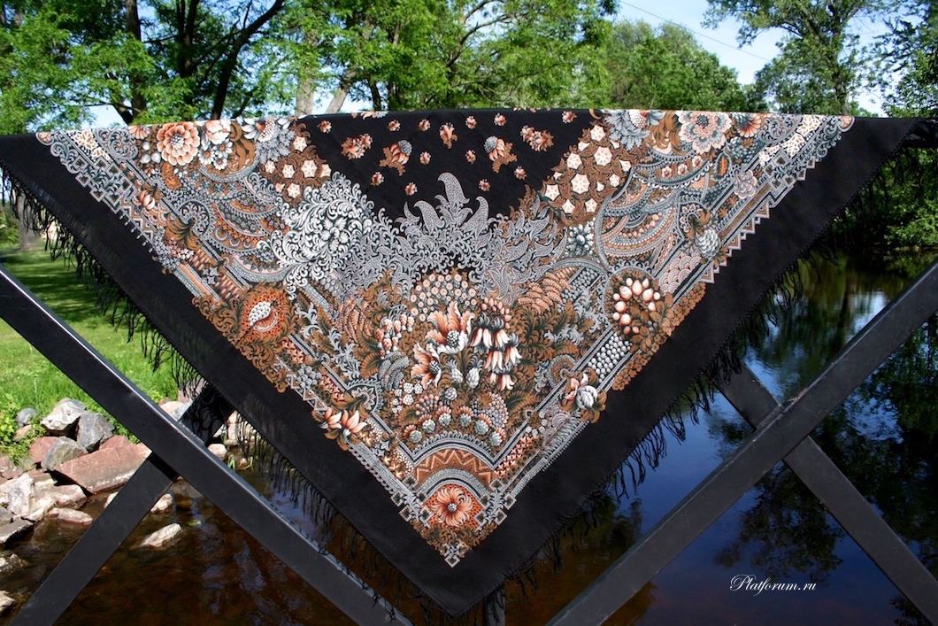 "Цветет сирень" - красивый и, вобщем-то, тоже носибельный. Как-то случайно встретила на улице "Цветет сирень" -9 - на молодой женщине с пепельными волосами - летом - аж голову свернула - незабываемо красиво.Но для меня это абсолютно "проходной" платок. Несмотря на высокий класс рисунка К.С. Зиновьевой, и отличную работу колористов. Шаблоны для него, наверное, делать не надо. А заново напечатать немного платков - в основном ассортименте - ведь можно. Только на хорошей ткани. В свое время не купила "Цветет сирень"-7 в основном из-за того, что ткань была откровенно плохая - редкая, неровная, шероховатая. Ограничилась "Цветет сирень"-10. (ткань лучше).
