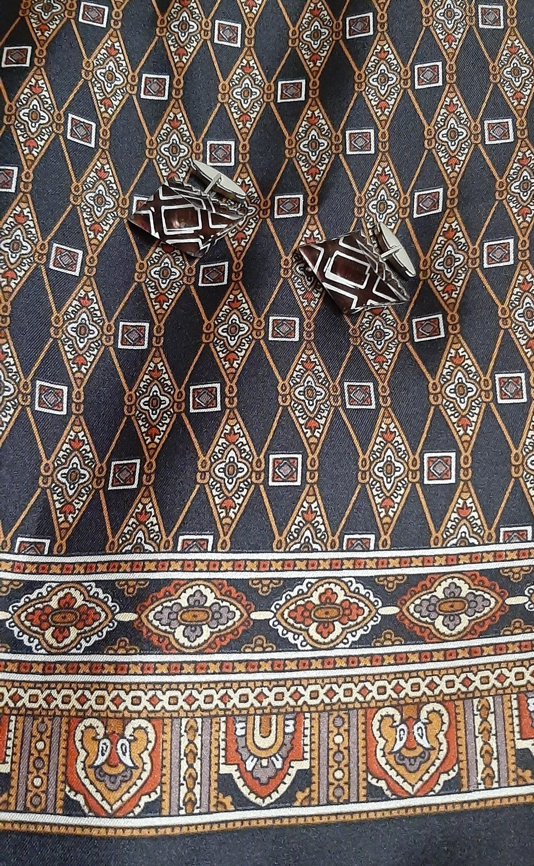 Удивительно, но кашне "Босс" так подходит к запонкам моего отца, будто в одном комплекте продавались. Запонки 1970х гг.