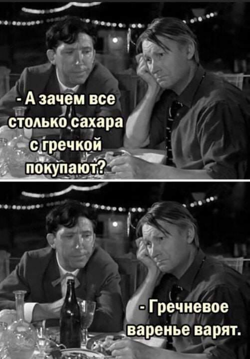 Через какое-то время в один прекрасный день у твоего подъезда одновременно останавливаются сразу три машины скорой психиатрической помощи (как впоследствии выяснится, их одновременно не сговариваясь вызвали коллеги, жена и кот), тебя увозят и ты месяц лежишь в комнате с белым как сахар потолком, с правом на надежду, с верою в любовь. Тебя каждый день водят на процедуры и дают какие-то лекарства, и через месяц выписывают. Жена отправляет тебя в магазин за хлебом, ты абсолютно равнодушно смотришь на пачки с сахаром. Ты стоишь на кассе с буханкой хлеба, как вдруг твой скучающий взгляд падает на бабку с тележкой, на которой 22 пачки гречки. Твои глаза загораются огнём азарта...