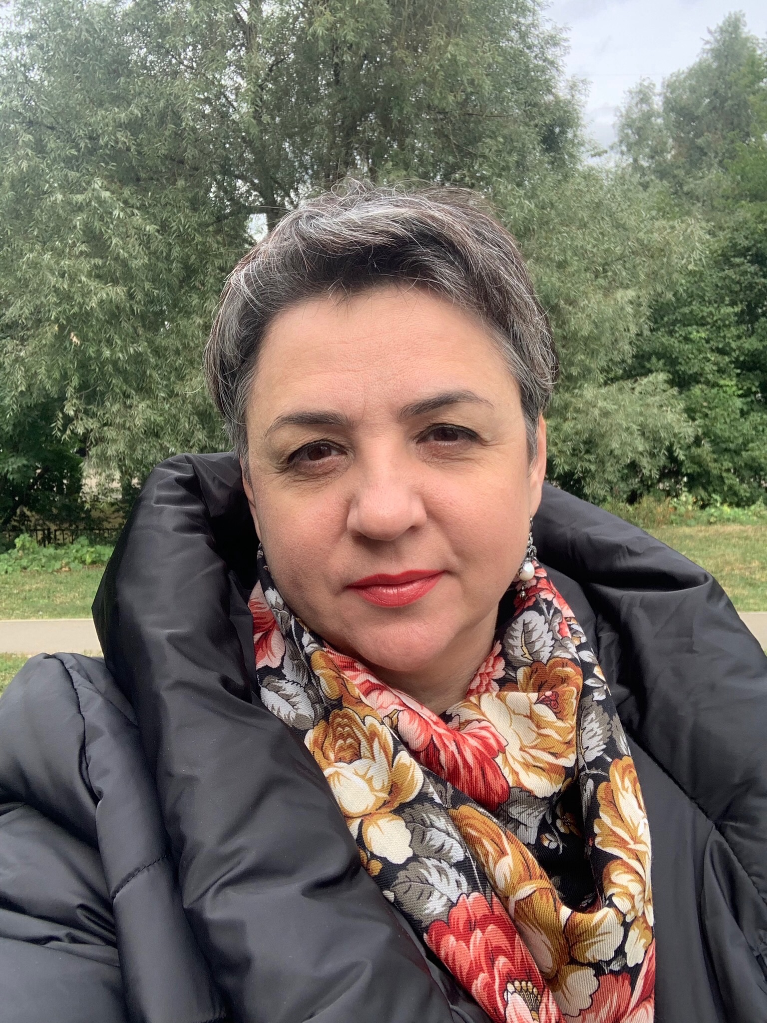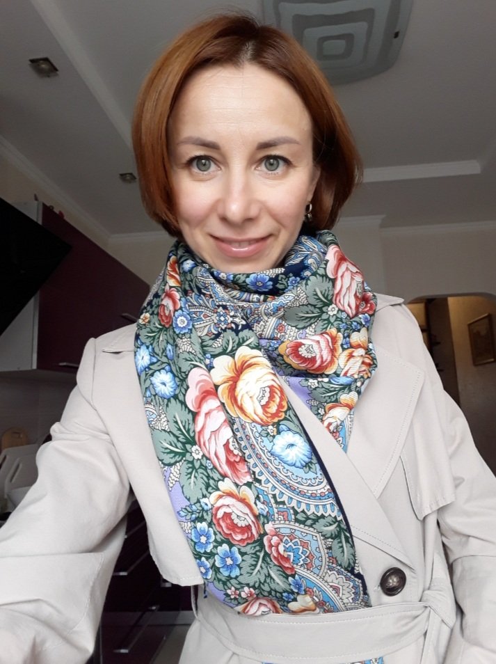 Любуюсь улыбкой вашей и прекрасной шалью, вас украшающей и согревающей! Очень уютно вы носите платочки! Приятной вам осени!