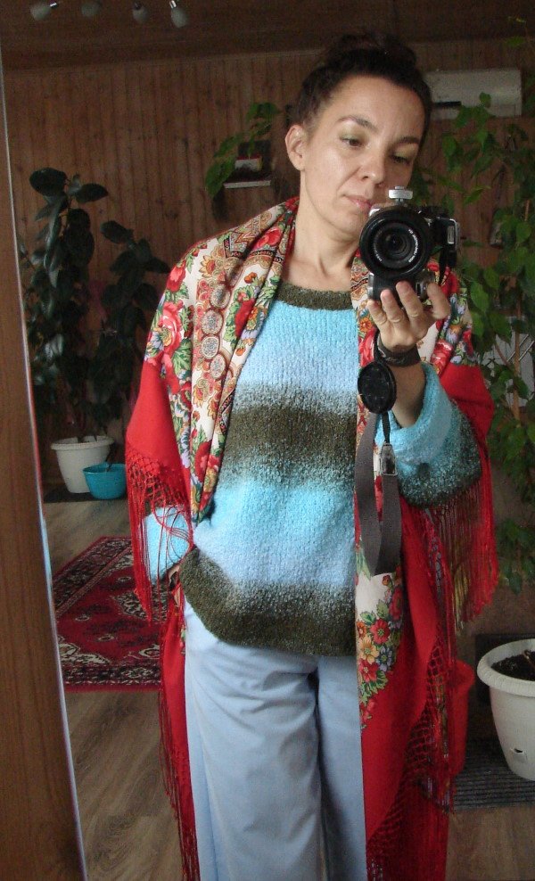 Вам уже написали много восхищённых комментариев по поводу показов шалей с длинными платьями. Присоединяюсь ко всем отзывам и тоже выражаю восхищение, особенно показом Драгоценной! Вам очень идёт этот царственный стиль! И цветовая гамма вам очень подходит!