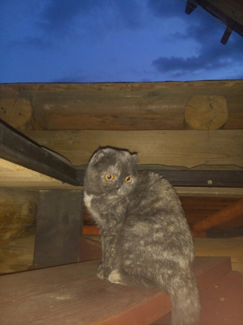 Кошка , правда , как совушка, сидящяя на чердаке в сумерках.