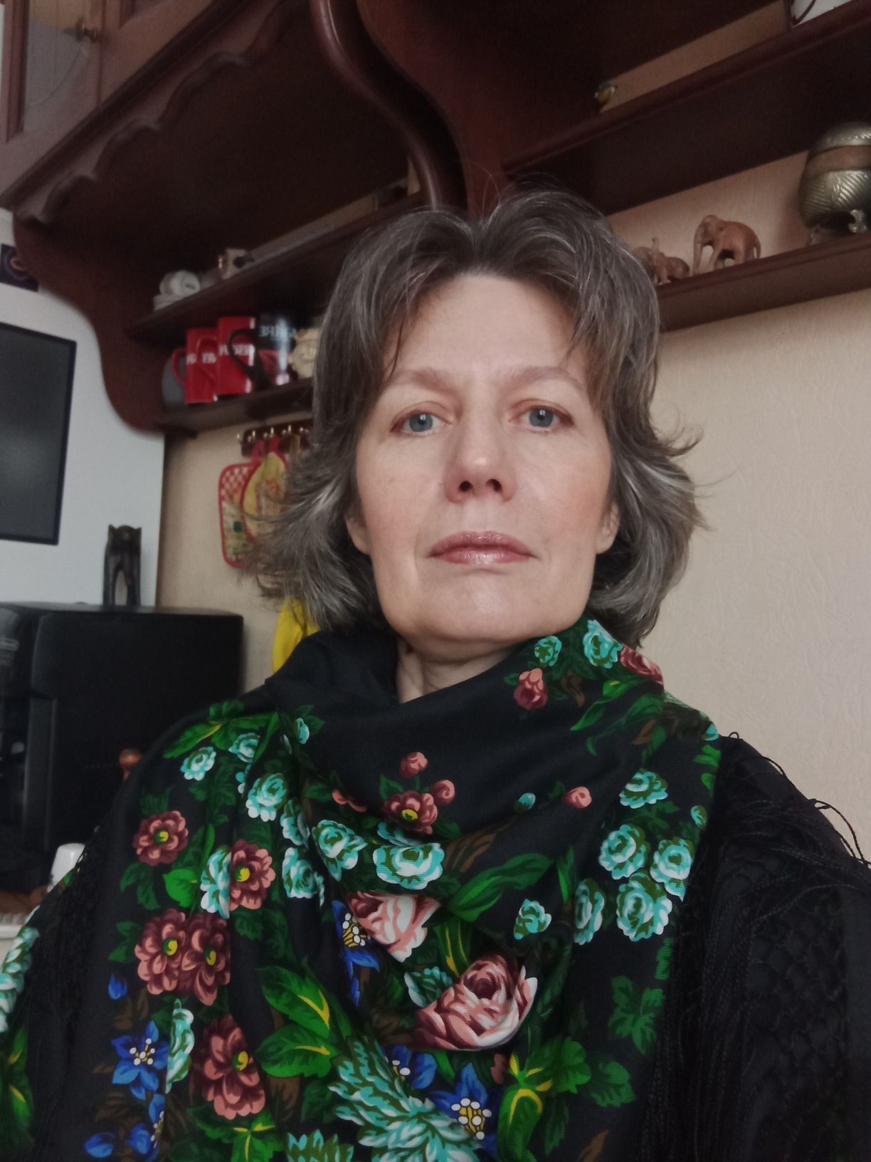 Люба, милая Незабудка. А мы ж не наряжаемся, просто живем так, в платках. Иногда в элегантно серых.