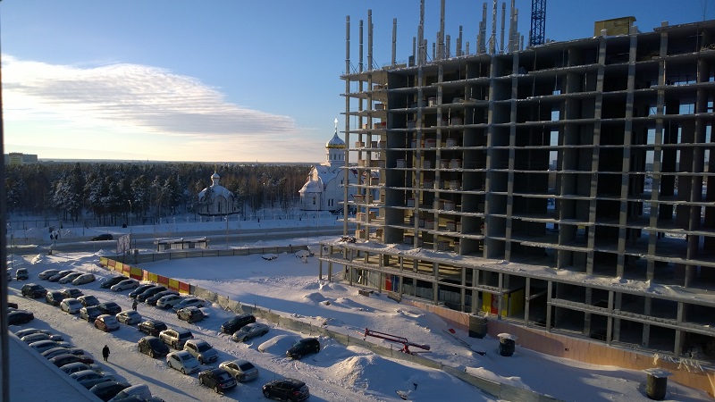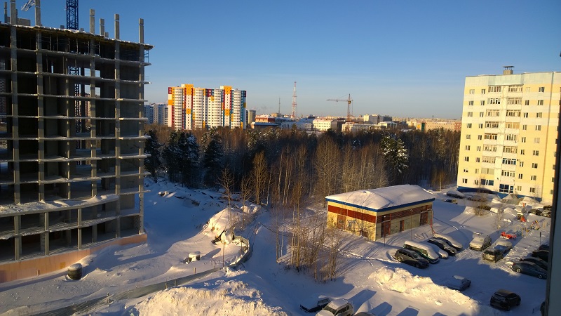 Наш город довольно молодой, активно застраивающийся - там, где я сейчас живу, было чистое поле 10 лет назад, а теперь это новый микрорайон. Когда я приехала в Сургут, меня поразило обилие домов, раскрашенных в яркие краски - с таким цветовым решением зима кажется не такой мрачной и суровой. Стройка идет во всю, и перед моими окнами тоже строят новый дом. Меня это явно не радует, т.к. до этого перед окнами росли вековые сосны (такие, как на фото справа), и было очень красиво. Но их срубили, и теперь там будут жить люди. Строят у нас быстро, год-два, и дом готов, работа не прекращается даже ночью, но неудобств мне это особых не доставляет - ну разве что стала выключать свет, когда переодеваюсь