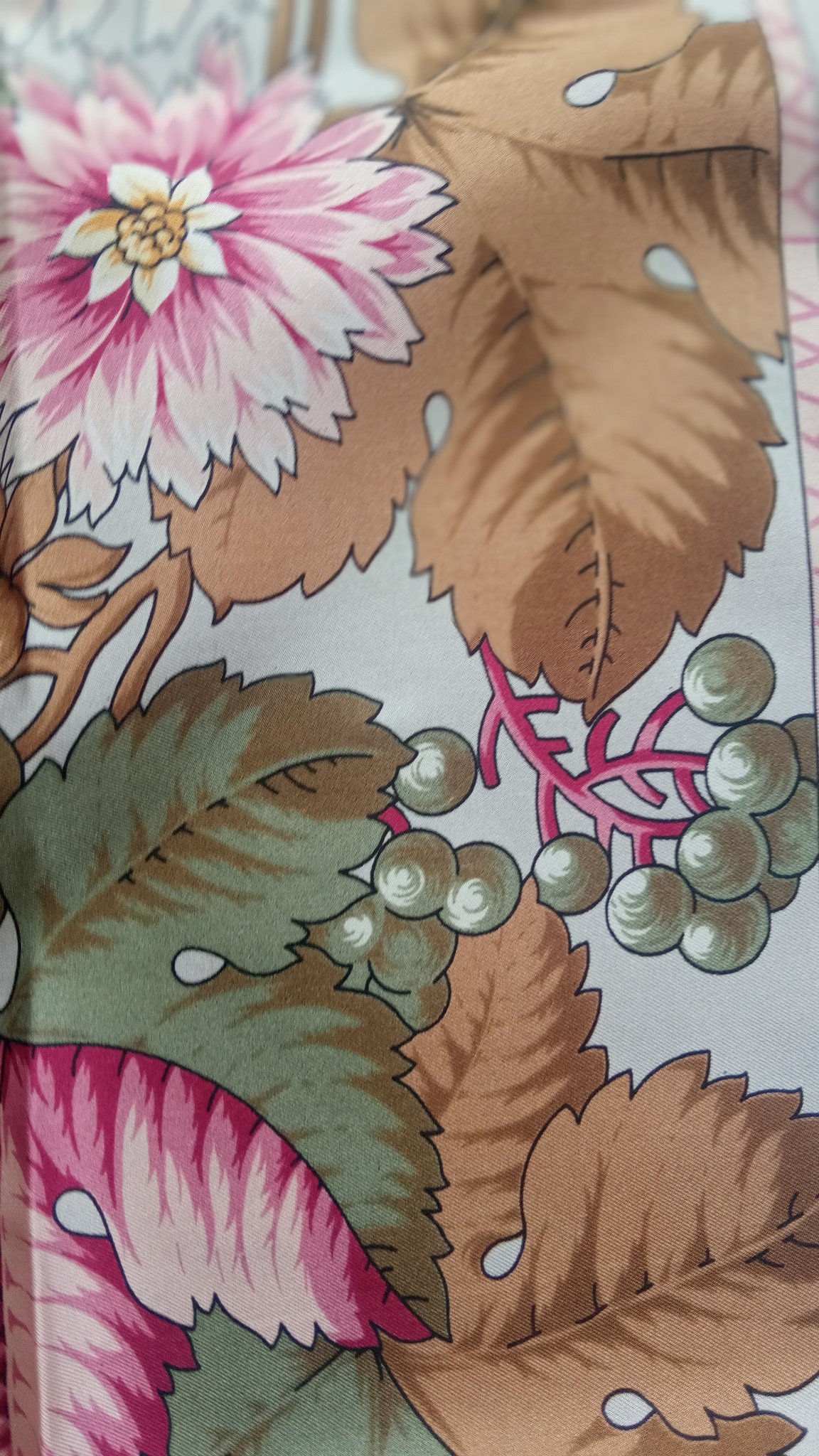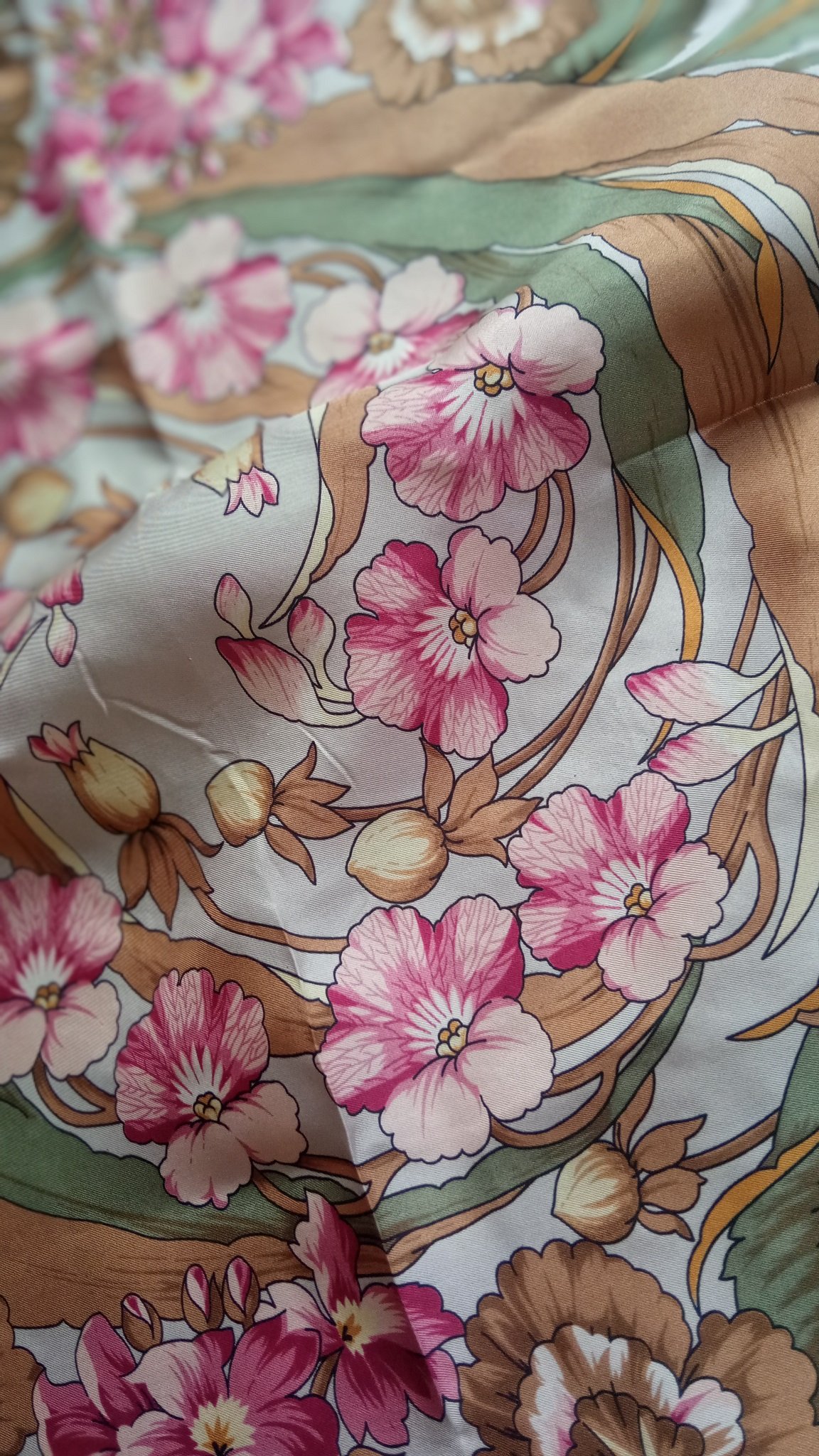 Фотографировать очень сложно, атлас такой блестящий. Платок куплен почти сразу после выхода, уже и гулял, и стирала я его. Для меня он очень носибельный и дружелюбный.