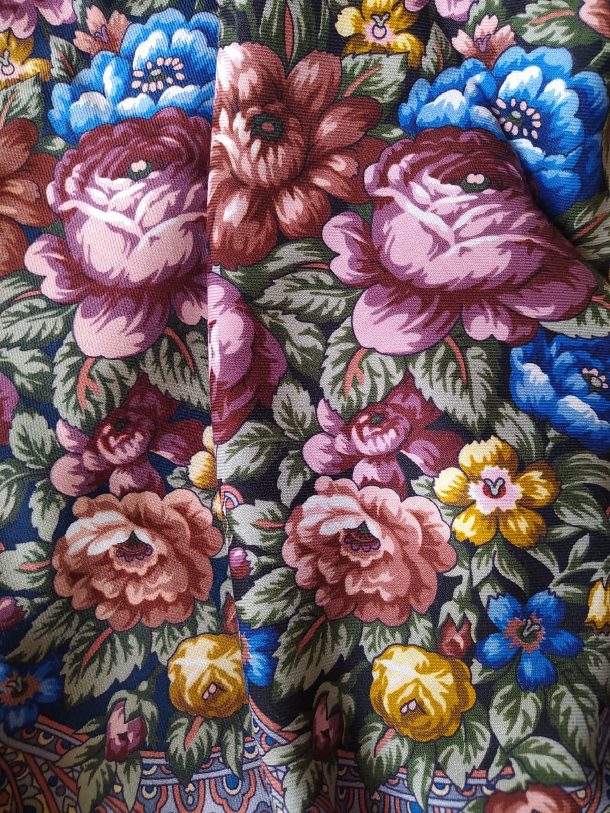 Мне тоже по фото показалось, что шаль стала зеленее и теплее. И желтые розы более теплый и яркий оттенок имеют. Захотелось шаль примерить, до этого я к ней не подходила.