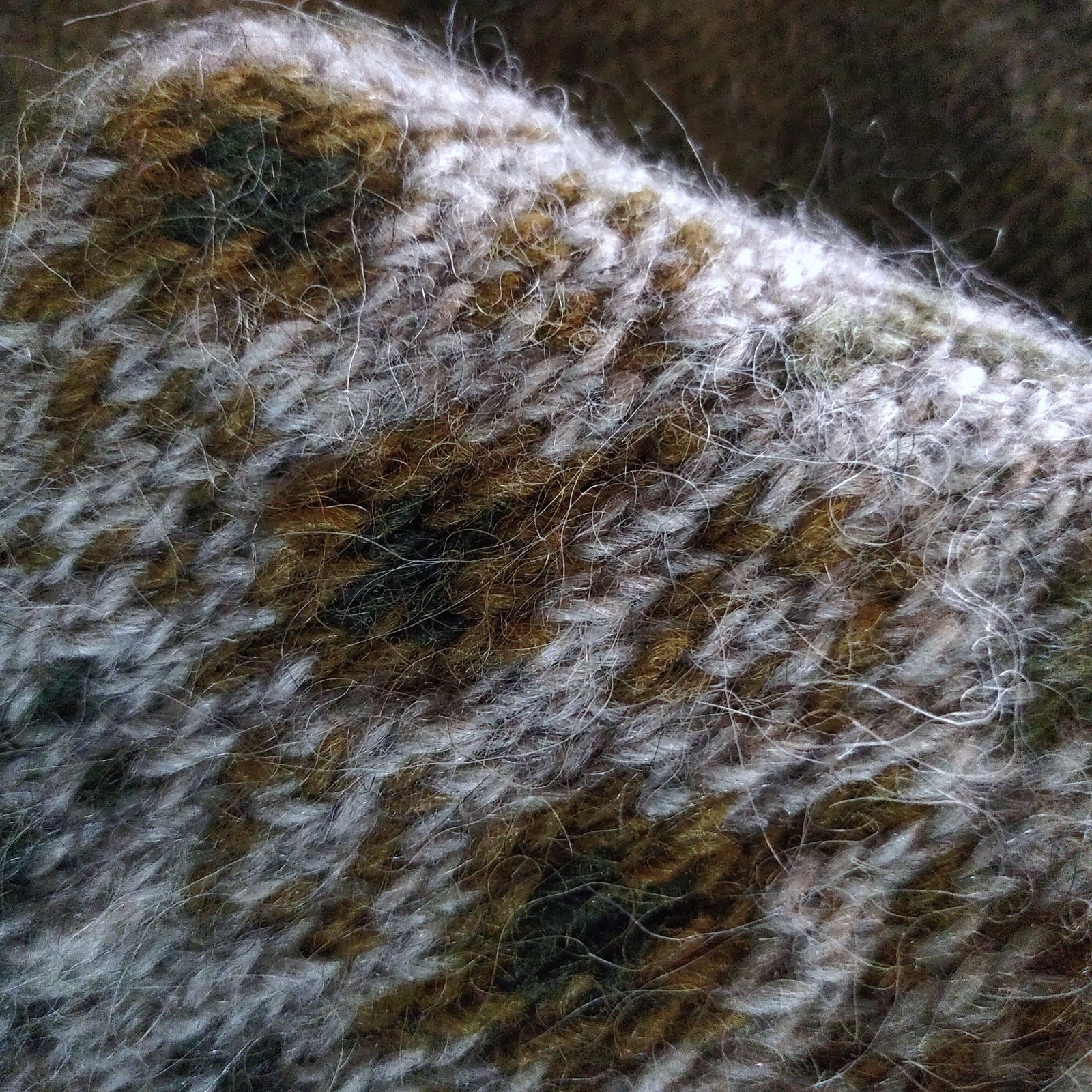 О вязании из пряжи одного цвета и пряжи с переходами цветов в данной технике речи вообще нет. Это способ, где процесс складывается из определенного качества шерсти и переплетения нитей в жаккарде. Полотно прекрасно себя чувствует после разрезания