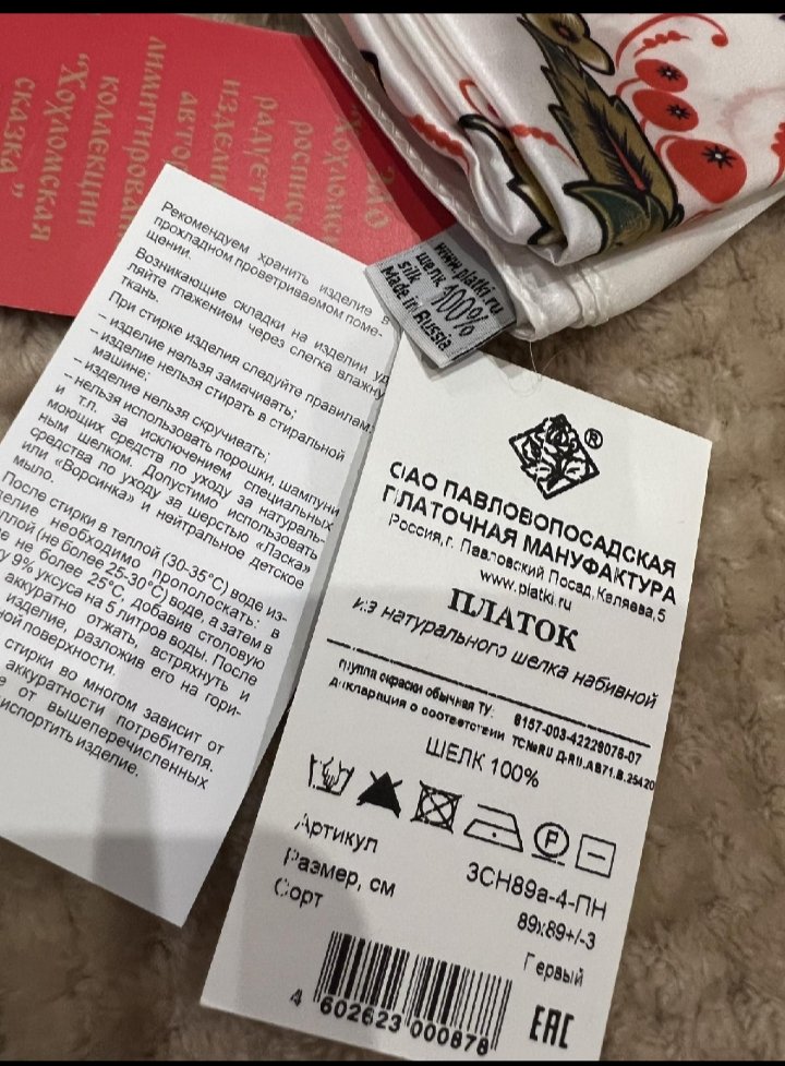 Кстати, о птичках. Касательно сообщения redcat от 23 марта. Вот нашла на просторах Сети фото платка с этикеткой по заказу ЗАО Хохломская роспись.