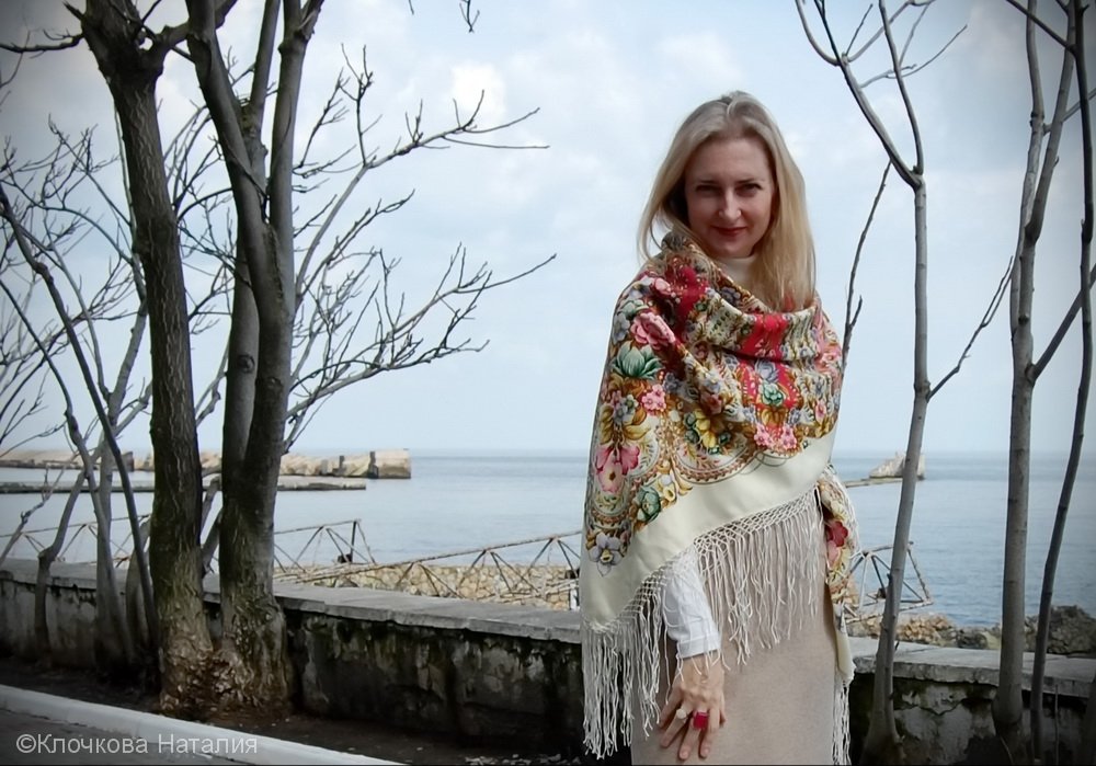 Думаю, что этот Павловопосадский можно будет носить, скрутив поплотнее, не на голове. Реально, платок неоднозначный. Зато вкус мужа понятен)