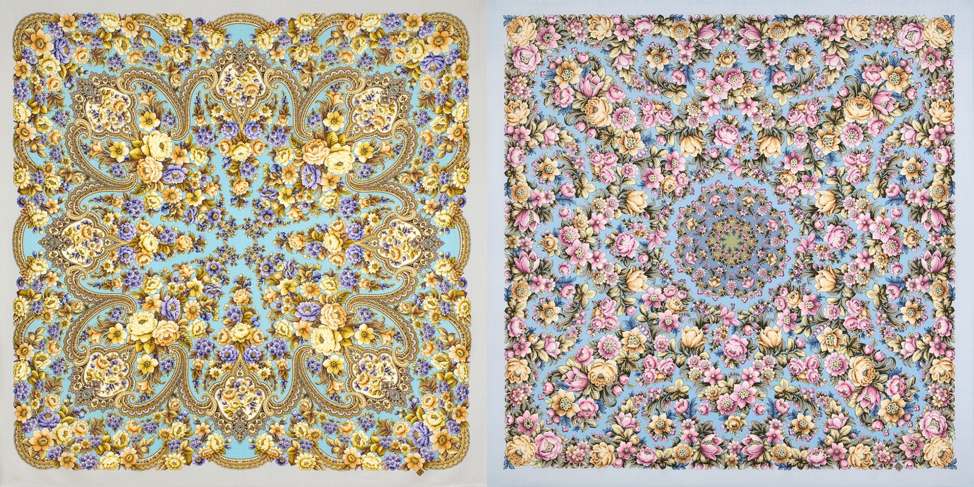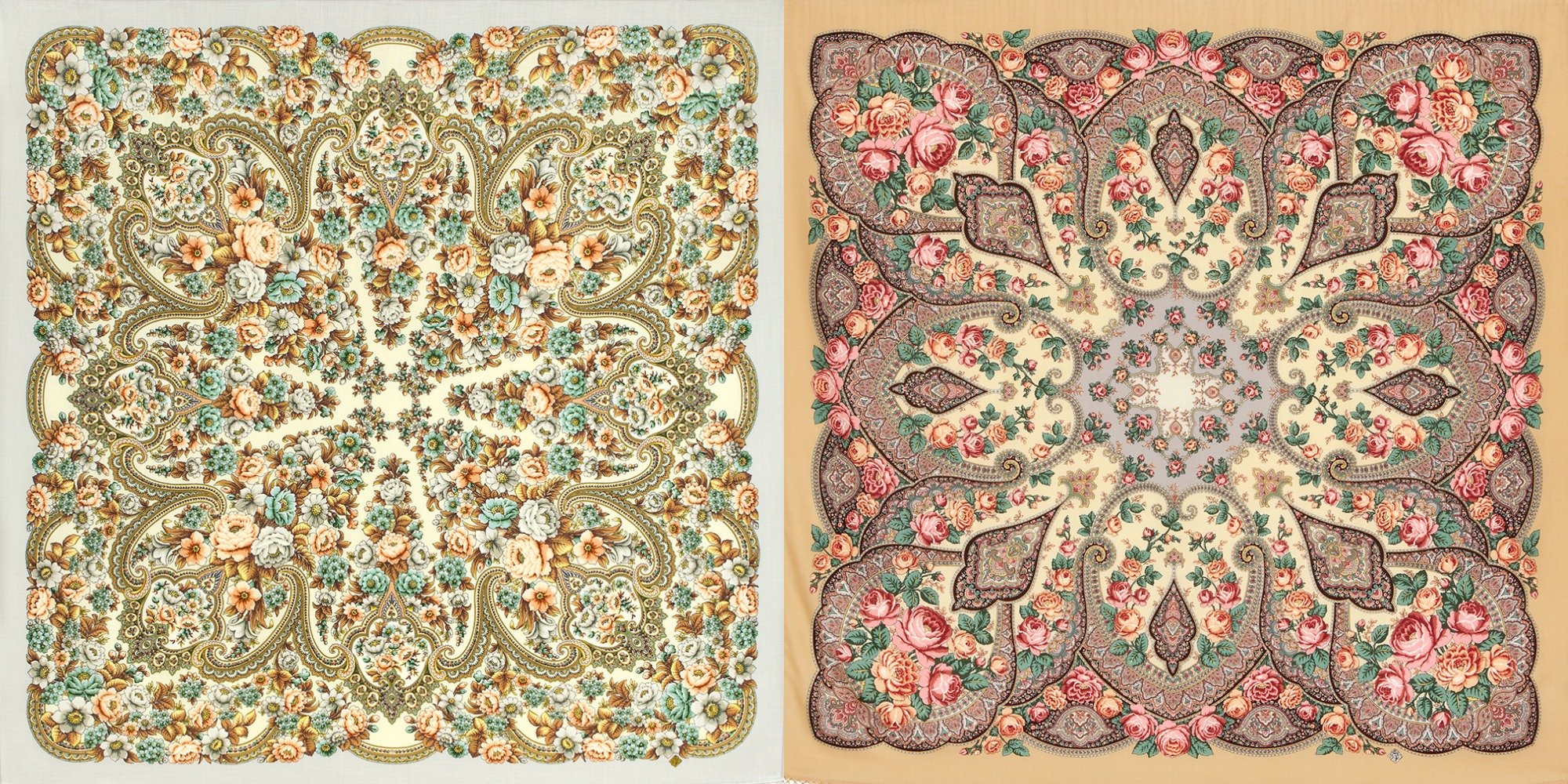 В сравнении видно, насколько разное настроение у платков. Я примеряла только Соловьиные ночи, и для меня важно было понять, оценить, насколько велика разница между этими двумя платками.