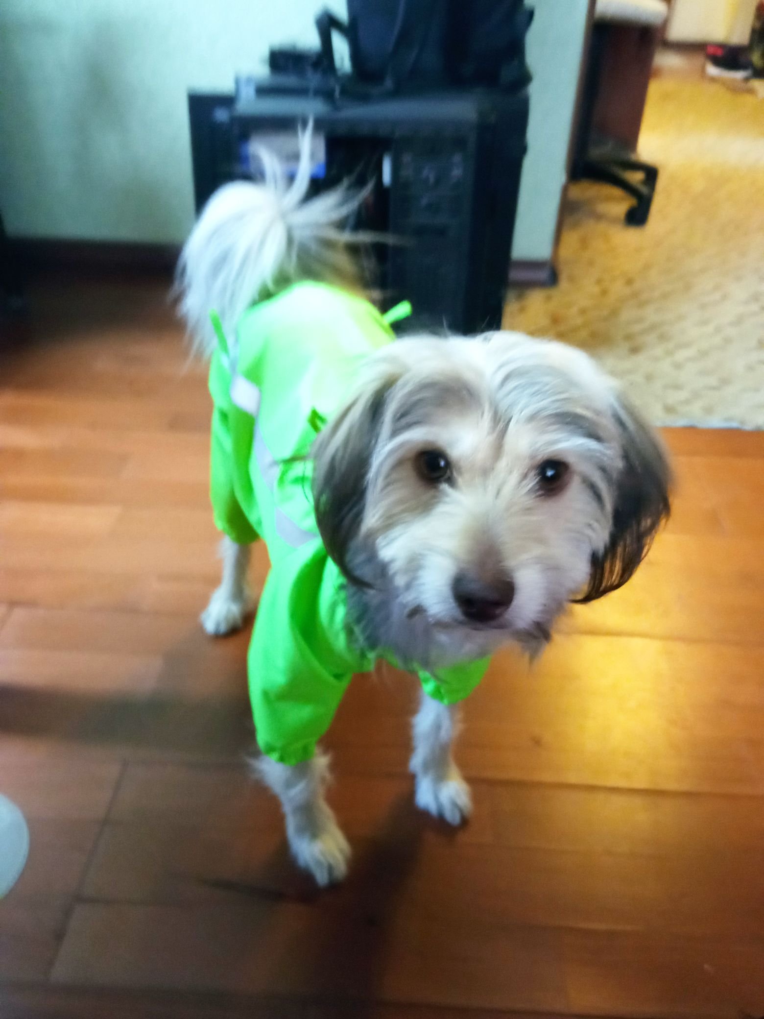 Зато руки дошли до собачьих комбезов. Собаке, правда, не в радость, пока не привыкла.