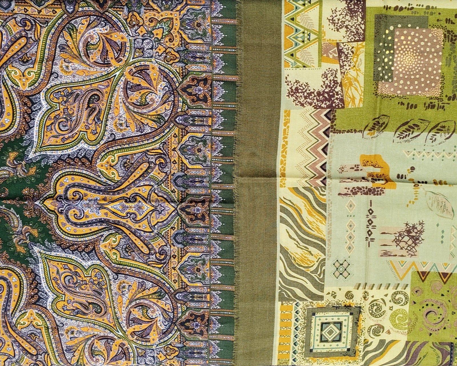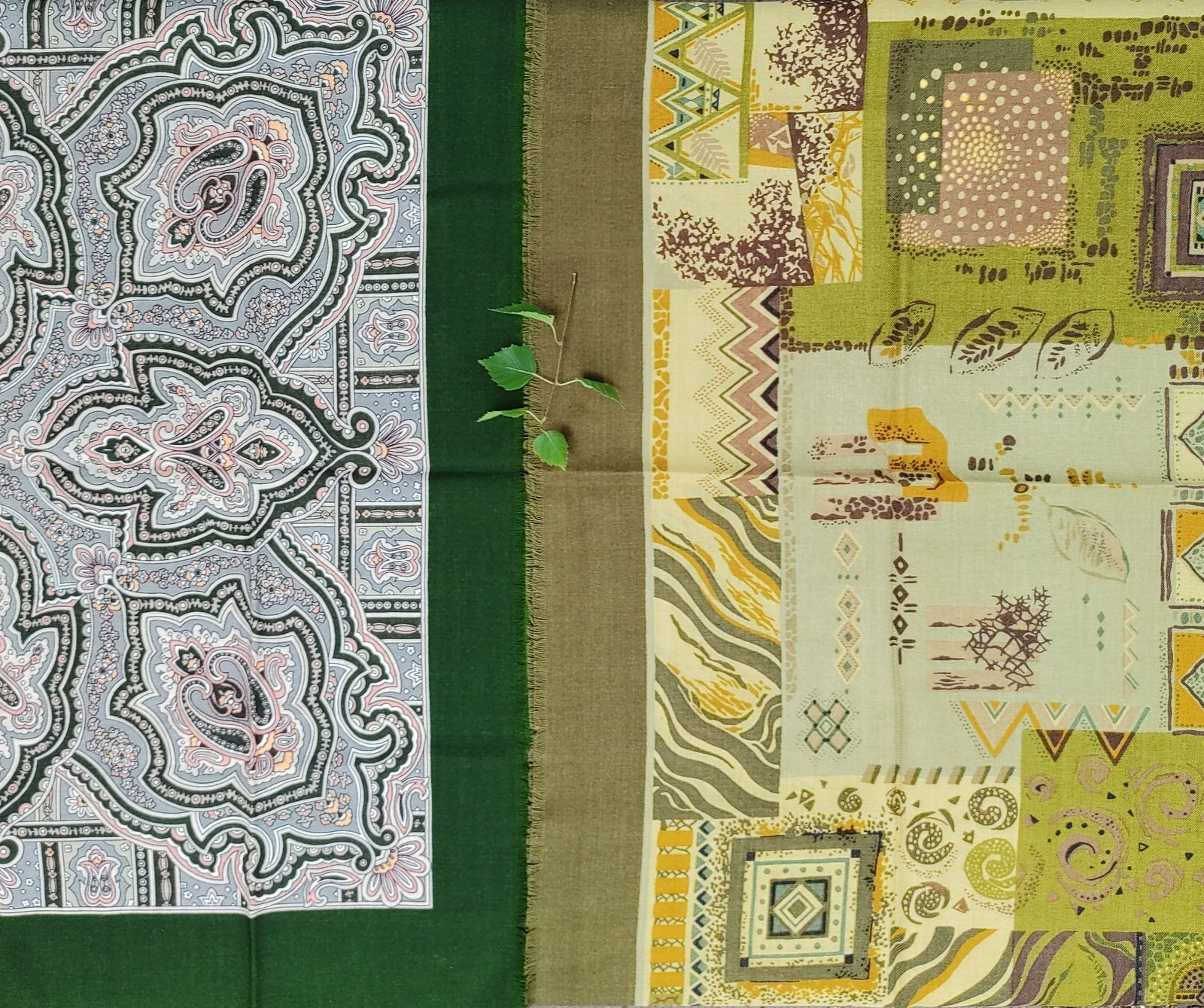 "Иллюзия" художник Фатеева Лидия, рис.877-10, шерсть 89х89 осыпка и "Золото Исиды" художник Белокур Наталья, рис.547-?, шелк (саржа) 89х89, выпуск 1998 год (платок - легенда ППМ и мой "бывалый путешественник"