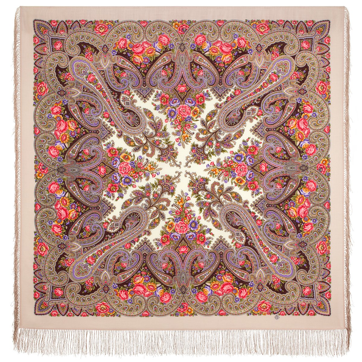 Платок шерстяной с шелковой бахромой, 146x146 см