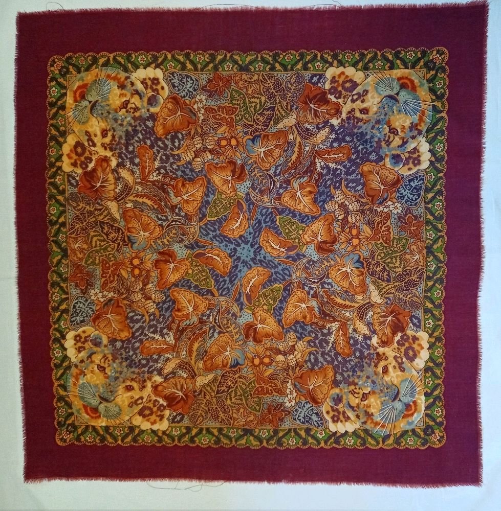 Долго смотрела на платочек, но решила, если дождётся, то обязательно приобрету! Конечно временем и молью истерзан, но очень красив! Размер 110 см где-то!Опознавательных знаков на изнанке нет, яркий, если не ошибаюсь или к. 19 и Н. 20 в. ,или дореволюционный платок! Просновки с другими платками не совпадают.Может платок есть на форуме, пока не искала, решила сразу поделиться!?