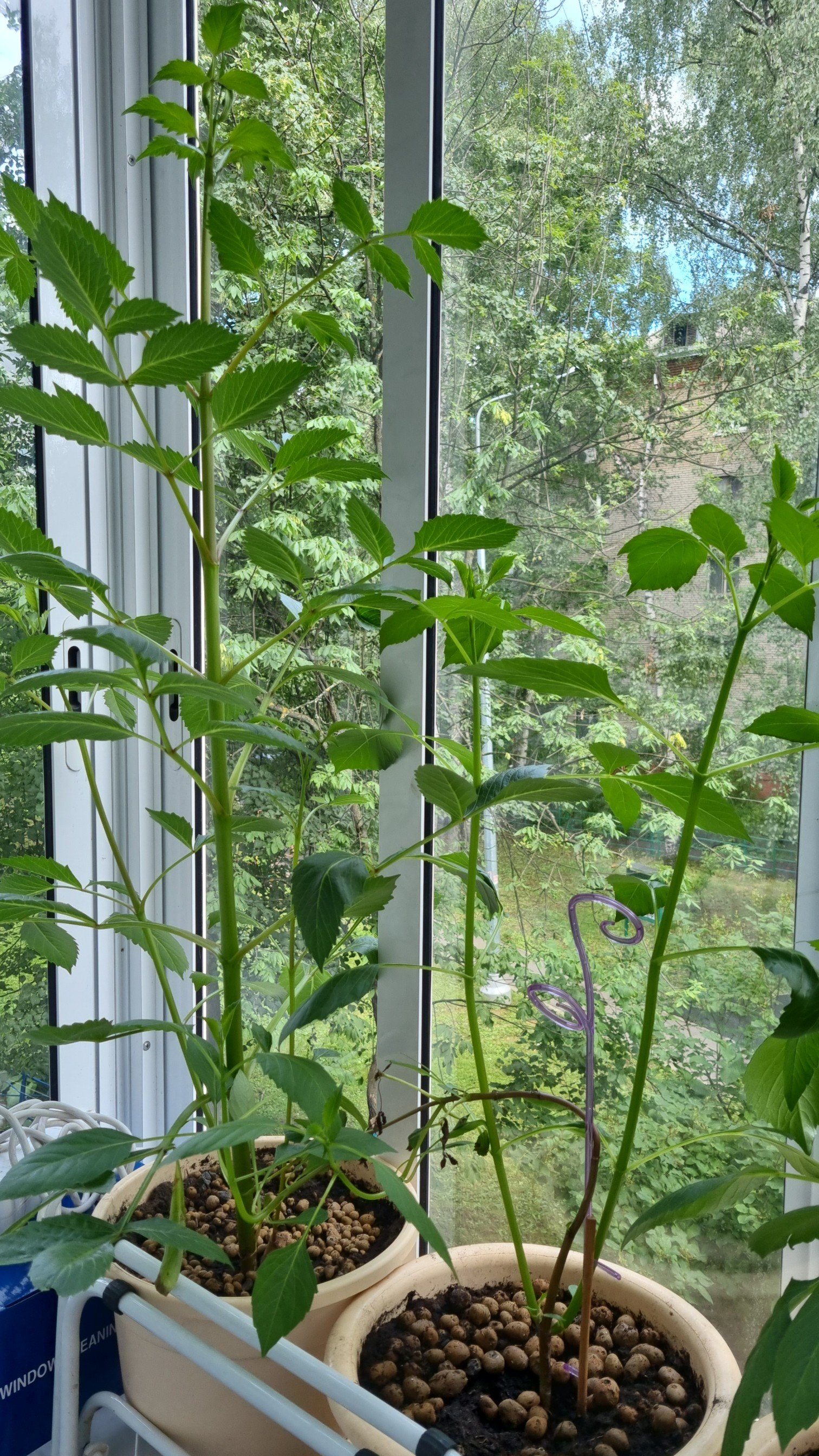 Решила посадить георгины у себя на балконе. Один уже гонит бутон :::