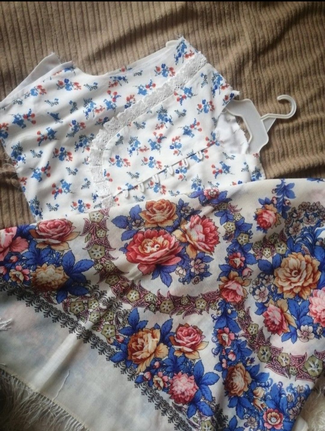 Елена А, красивые снимки! Особенно последнее фото понравилось. Удивительное совпадение рисунка и цвета ткани платья с рисунком и цветом средника платка. Это случайно получилось или специально подбирали? Если подбирали, то платье к шали или шаль к платью?
