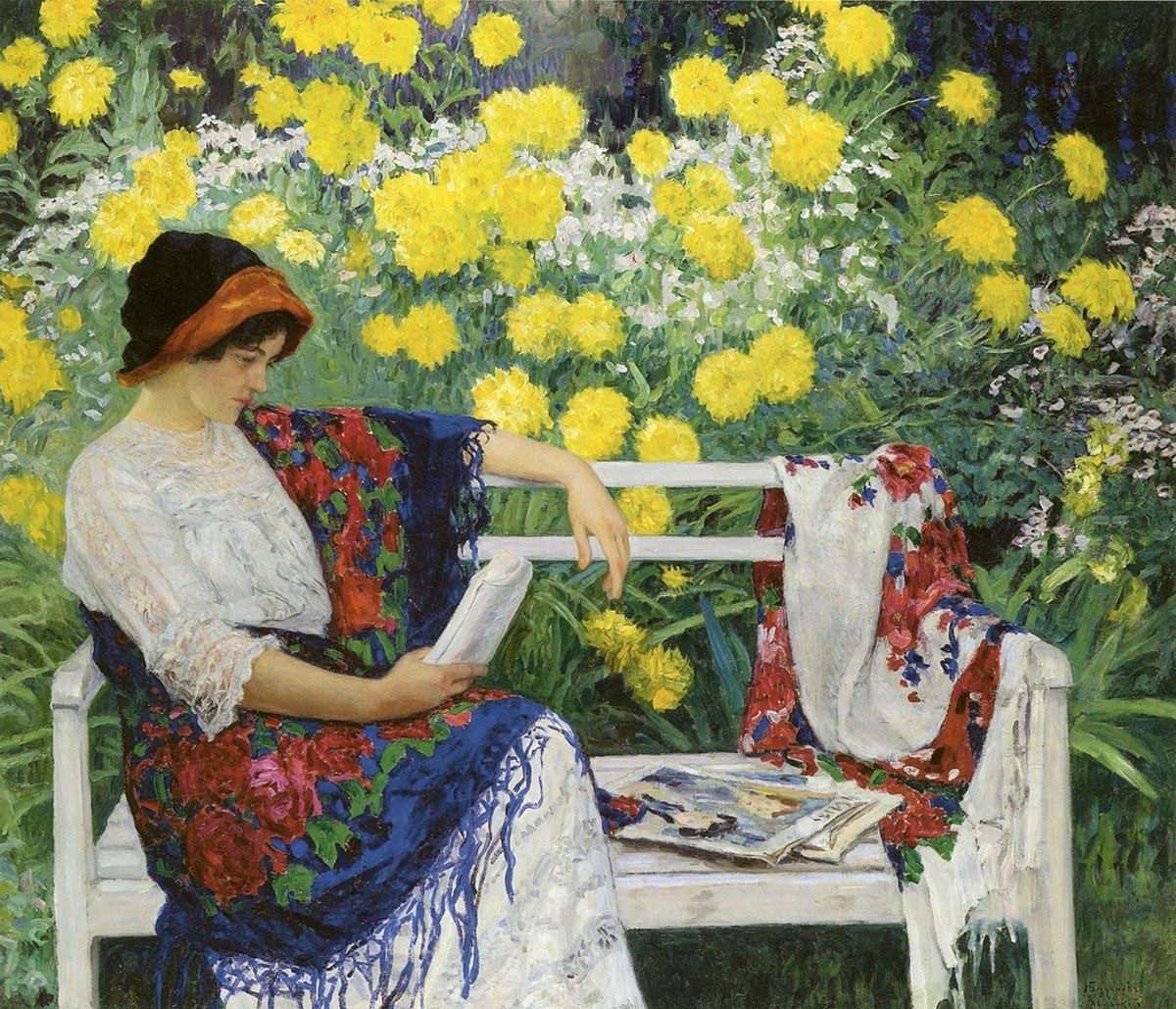 Читающая в саду. Богданов-Бельский 1915. Частная коллекция.