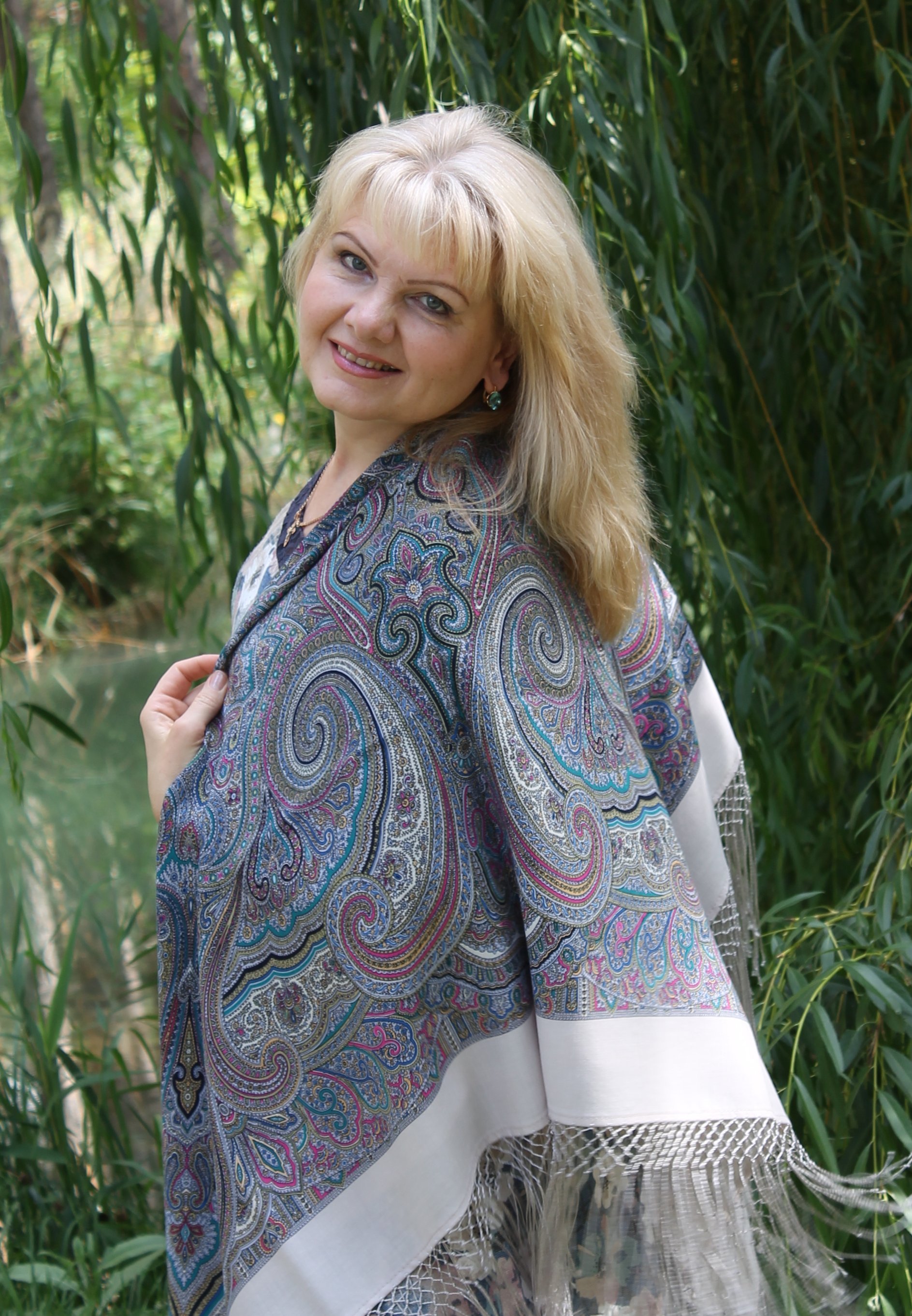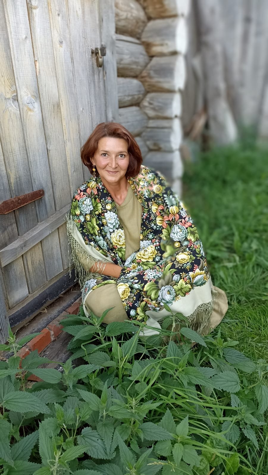 Здравствуйте дорогие мои форумчанки. Чуть не прозевала свой юбилей пребывания на форуме, поэтому вылезаю из кустов. Вот и прошло 10 лет как я с вами. Хочу поблагодарить всех, кто был со мной и в горе и в радости все эти годы. В наше сложное время розовые странички -- отдушина, бальзам. Хотя сижу в кустах, почти каждый день читаю и просматриваю форум, любуюсь красотой, многому учусь, так сказать "расширяю горизонты", ведь форум -- кладезь интересных, умных,интеллигентных и очень талантливых людей. Спасибо Вам, спасибо красоте павловопосадских платков, любовь к которым объединяет всех нас. Многие спрашивают, не надоели ли платки, продала бы ? Я, имея десятилетний опыт увлечения ПП платками,скажу так. Да, шали почти перестала носить, только в театр или на особый случай, больше ношу шарфы, палантины, вискозу. Да, иногда возникают мысли о том, что надо сократить неприлично разросшуюся коллекцию. Но, когда достаю эту красоту, не могу ни с чем расстаться. То есть, спустя 10 лет, могу сделать вывод, что" шалемания" в целом не излечима.Что бывают ремиссии и обострения потому, что павловопосадская красота согревает нас и радует, даёт жизненные силы, исцеляет от хандры, помогает отвлечься от повседневных забот. Ну а когда на себя эту красоту накидываешь, эта красота даёт возможность почувствовать себя королевой, ведь зеркало с возрастом совсем не радует. Ну и в качестве взноса фото 2020-года в шали Драгоценная 2 , старинный рисунок восстановлен художником Татьяной Сухаревской.