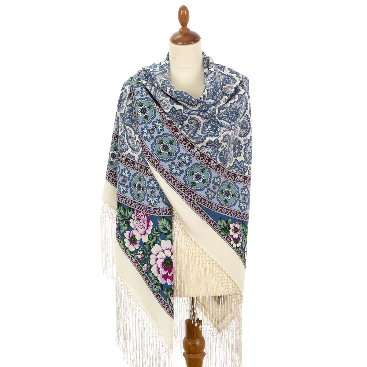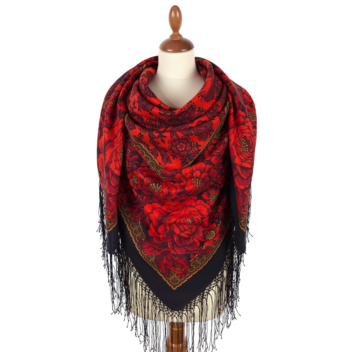 Платок шерстяной с шелковой бахромой, 125х125 см
