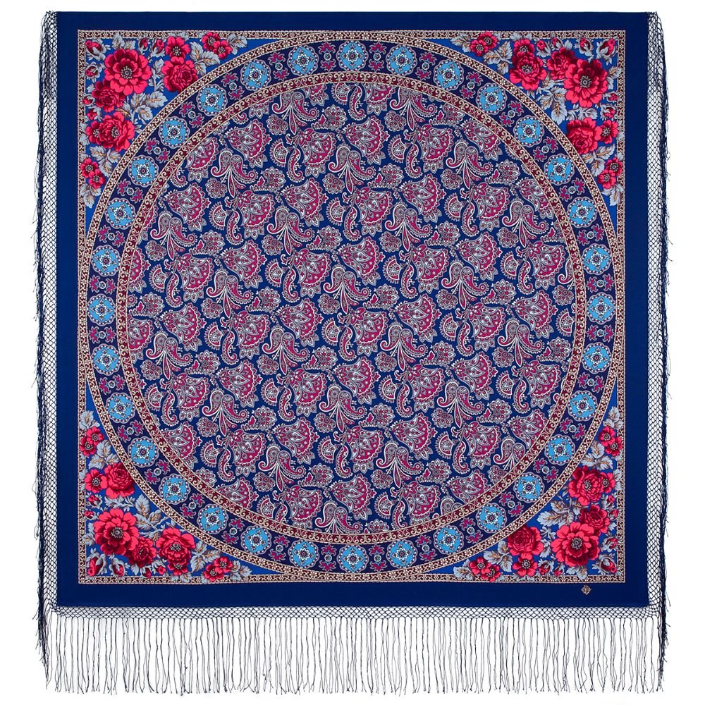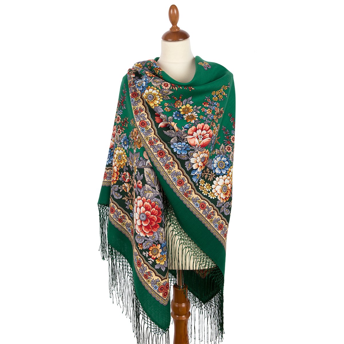 Многоцветный платок из уплотненной шерстяной ткани с шелковой бахромой, 148х148см, коллекционный