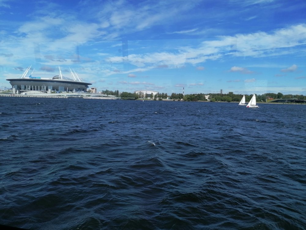 Катались на кораблике с выходом в Финский залив, было очень свежо на воде! И весь залив был в стайках парусов всех мастей и размеров-радовались волне и ветру! На фото конечно не получилось их заснять , но представить можно! Извините, горизонт завален, но ведь качало же....