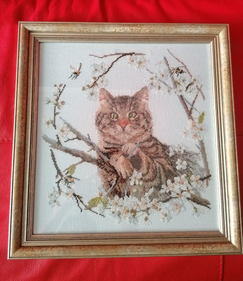 Галlина , решено , будет рамка ) Тем более для внука вышивала , он тоже захотел картину ! Думаю про оранжевый цвет , в тон носа кота U^U