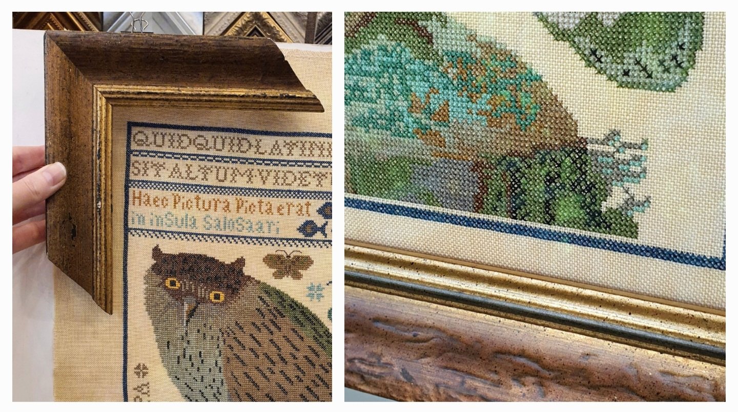 Я дошила совуню. Оформила тоже. И вот посмотрите, как деревянный багет в образце может отличаться от того, что приходит в новой партии и получаеся в итоге! На коллаже выбранный мной багет (слева) и этот же по артикулу в готовом варианте. Но то, что получилось, мне кажется, не хуже. Как думаете?
