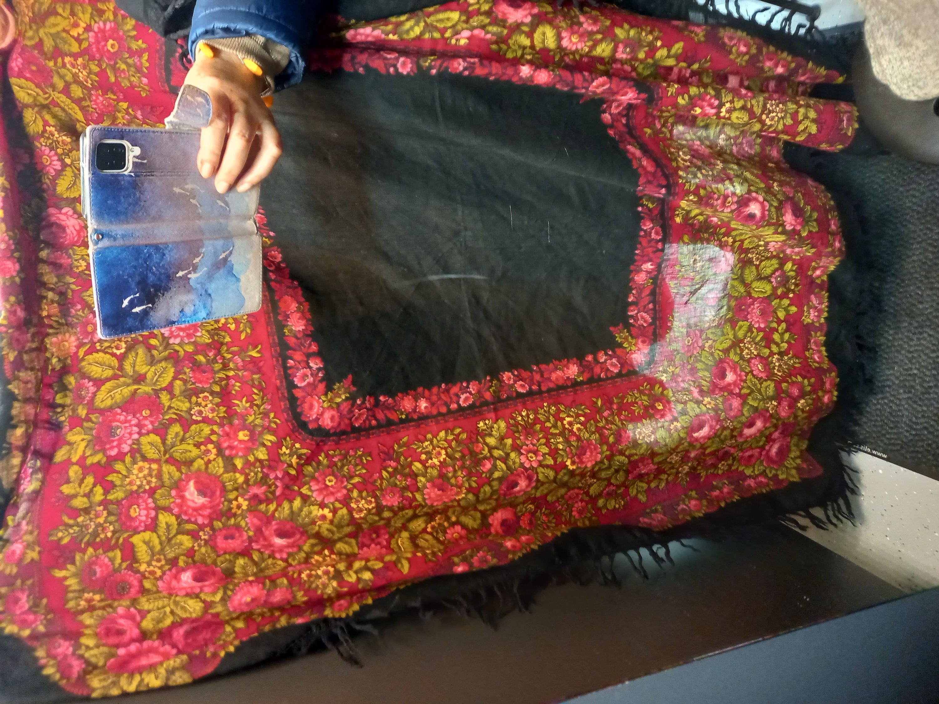 Добрый день, вот такой платок нашла в гуманитарном. Платок большой, с хохломскими мотивами, шерстяная бахрома свалялась после стирки. Это ПП или фейк?