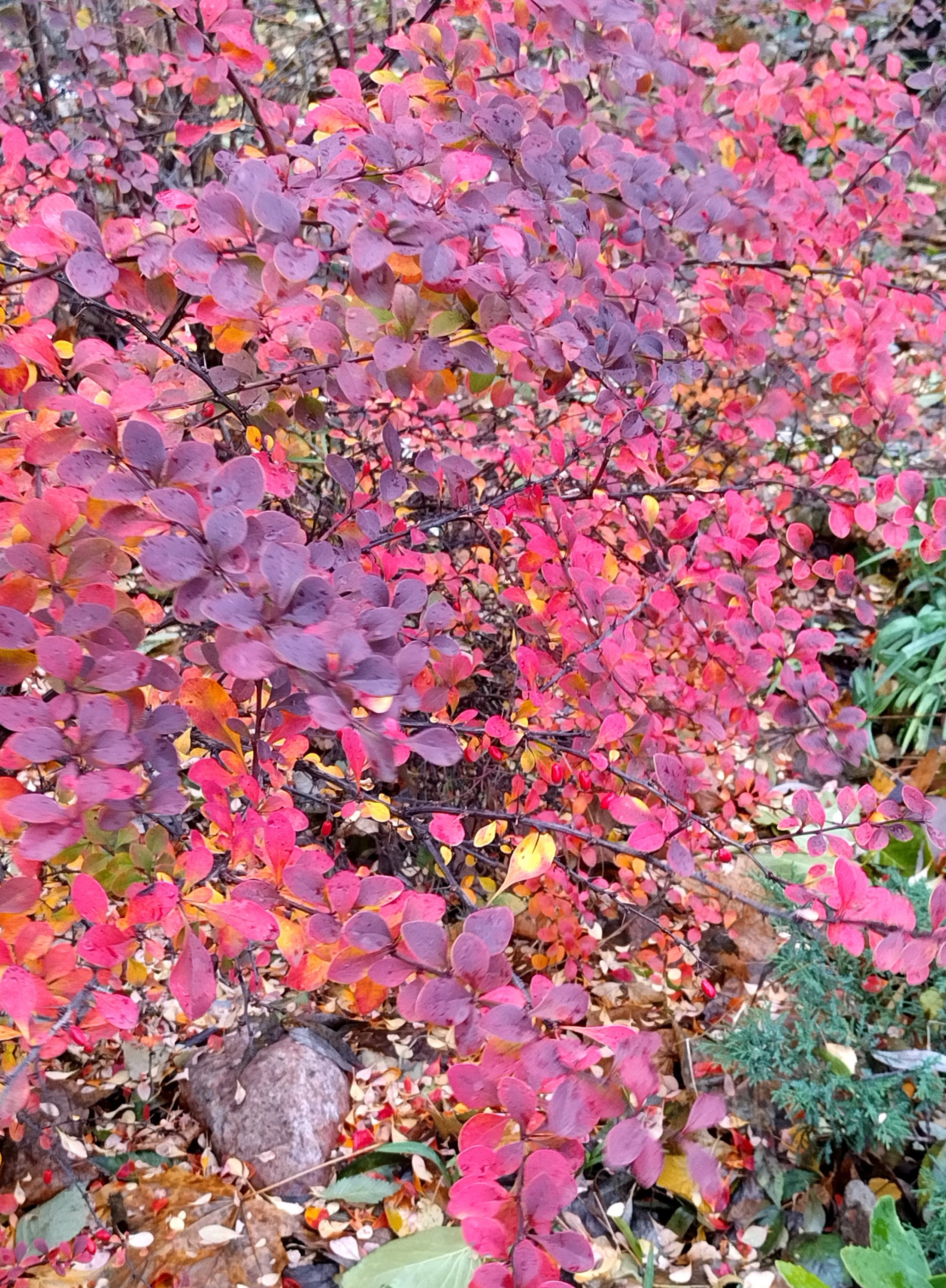 Вот прямо день назад этот красный куст сфоткала в соседнем дворе... Он был даже ещё ярче!