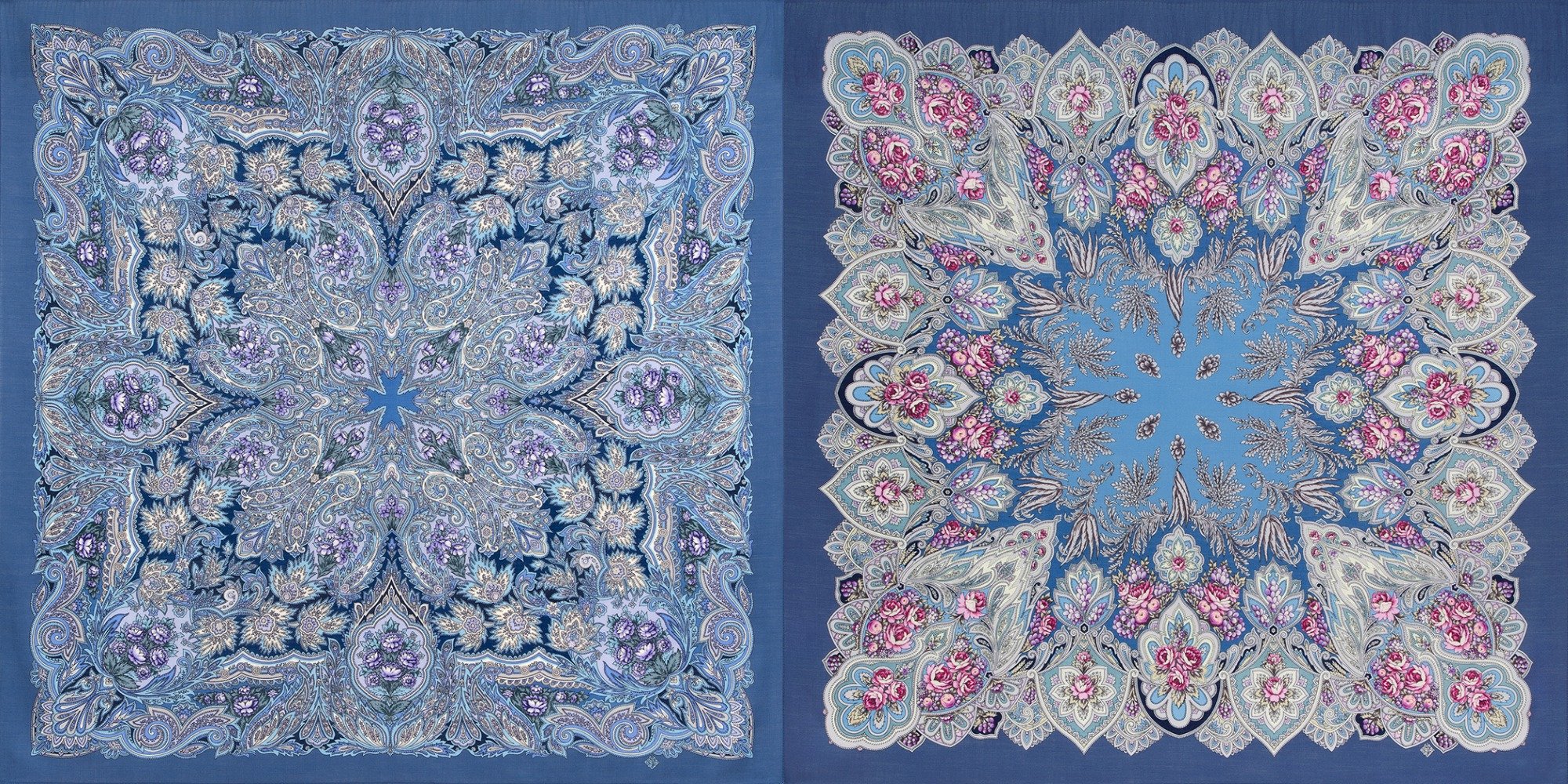 Оба красивы, оттенки синего и голубого замечательные, но цветам не достает розовинки старых вариантов, потерялась фарфоровость. Удачно купила на авито старый экземпляр в прревыпуск.
