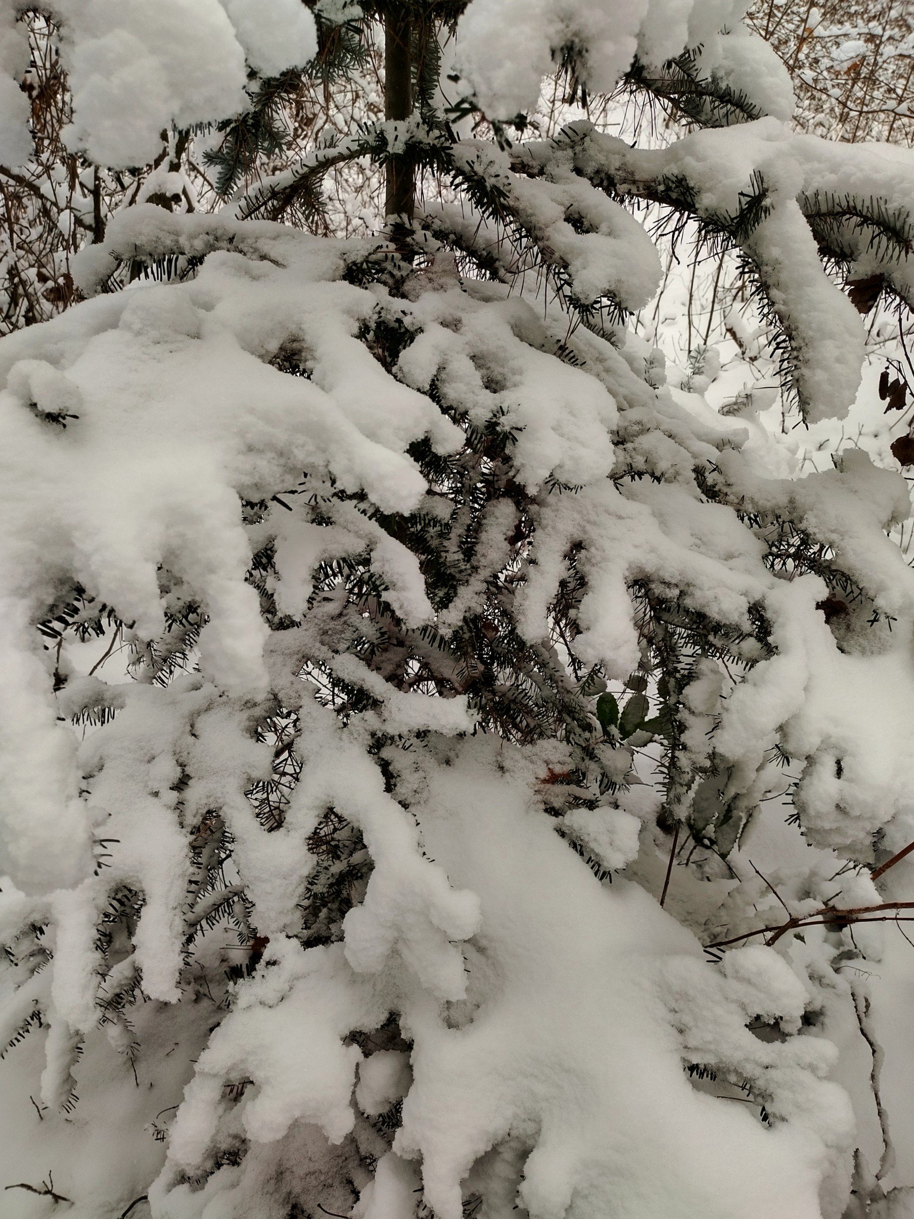 Серое небо и черные ели,
