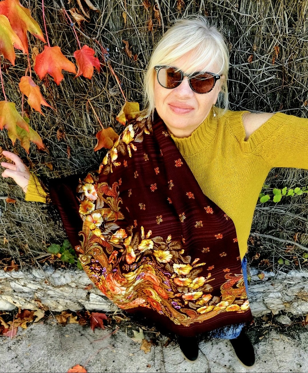 Ирочка, красота необыкновенная! Просто чудесно! На горчичном фоне - то что доктор прописал) И платок, и погода, и природа, всё сошлось с вами, такая гармония (Кликните, чтобы почитать, что спрятано под катом)...