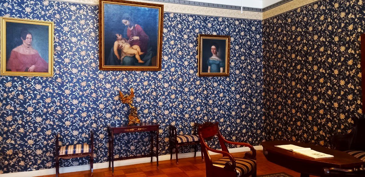 На стенах картины - портреты семьи и друзей и места, где путешествовал композитор.